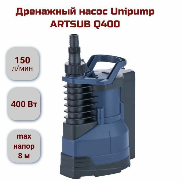 Дренажный насос Unipump ARTSUB Q400 - это надежное и эффективное решение для сбора и откачивания воды в домашних условиях или на территории малых предприятий. Этот насос обладает максимальным расходом воды до 9 кубических метров в час, что позволяет быстро и эффективно удалять большое количество жидкости.