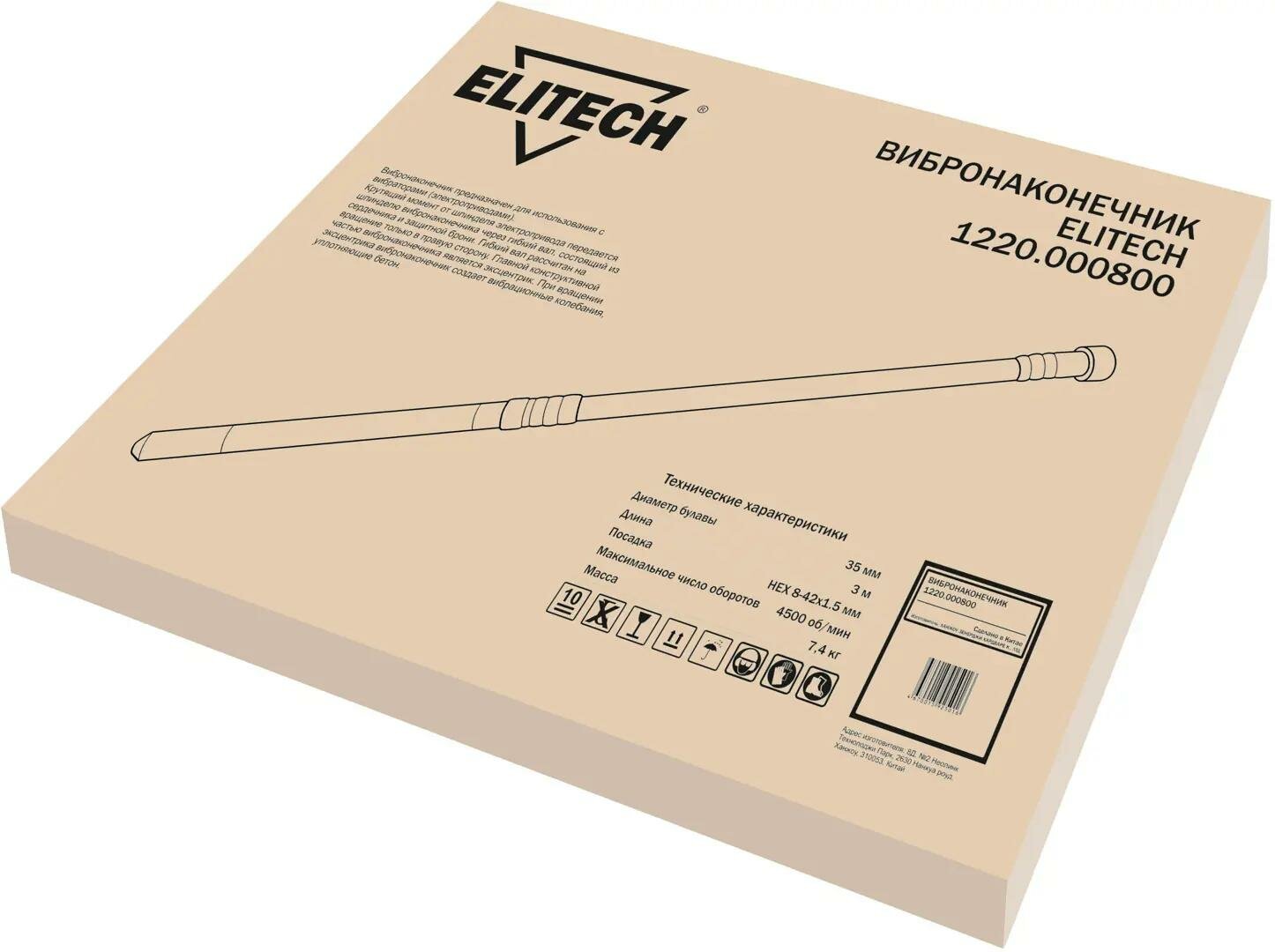 Насадка для вибратора Elitech 1220.000800 HEX8-42x1.5 оптом и в розницу с доставкой по всей территории РФ. С помощью вибратора с гибким валом можно уплотнить жидкую бетонную смесь, уменьшить концентрацию в ней воды и воздуха, тем самым улучшив качество будущего бетона. После обработки вибратором бетон приобретает большую износостойкость и лучше переносит механическую нагрузку. После погружения вала в бетонную смесь создаются колебательные движения, благодаря которым и происходит улучшение консистенции жидкого бетона. Обычно вибратор используют при заливке стен, фундаментов, столбов и т. п. Трехметровая длина вала дает возможность работать с бетонными смесями соответствующей глубины. Посадка вибронаконечника: HEX8-42x1.5 мм. Длина 3 метра. Диаметр вибронаконечника 35 мм.