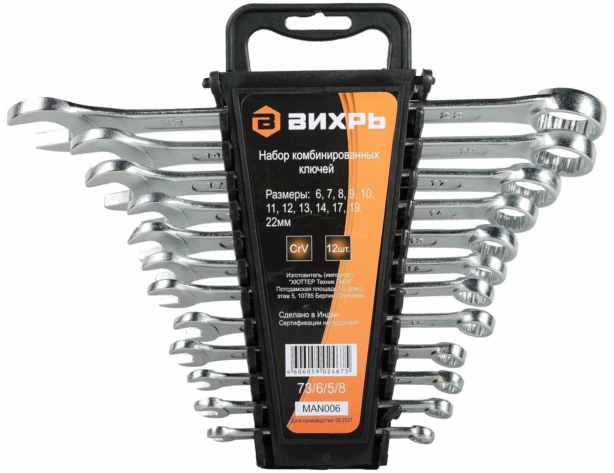 Набор комбинированных ключей Вихрь 73/6/5/8