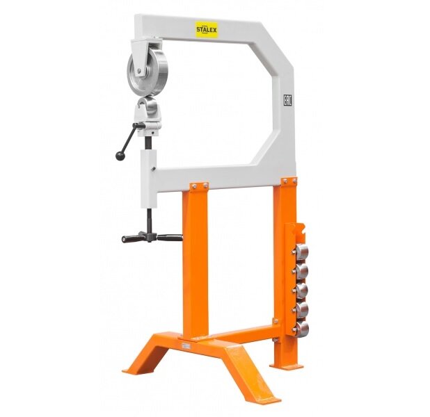 Английское колесо – специальный роликовый вытяжной станок предназначенный для формовки листового металла (из малоуглеродистой стали или эквивалентной стали). Обрабатываемая металлическая заготовка протягивается между верхним и нижним роликами, она становится длиннее и тоньше. В то же время направляющий ролик вдавливается в металл, изгибая заготовку. За счет изменения количества и типоразмера направляющих роликов можно получить различные контуры. Изготовлен из чугуна и стали и обеспечивает минимальное отклонение обрабатываемой детали вовремя операция формования. Роликовый вытяжной станок может придавать изогнутую форму листам из мягкой стали до 1,2мм и алюминия толщиной приблизительно до 1,9 мм. Часто используется для калибровочных задач (улучшение качества поверхности изгиба на заготовке), после работ на таких станках как Шринкеры и Стретчеры.