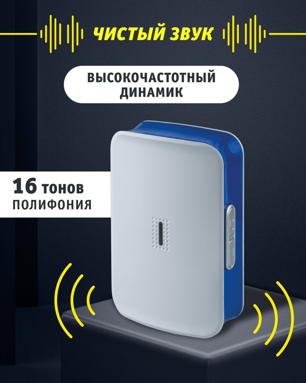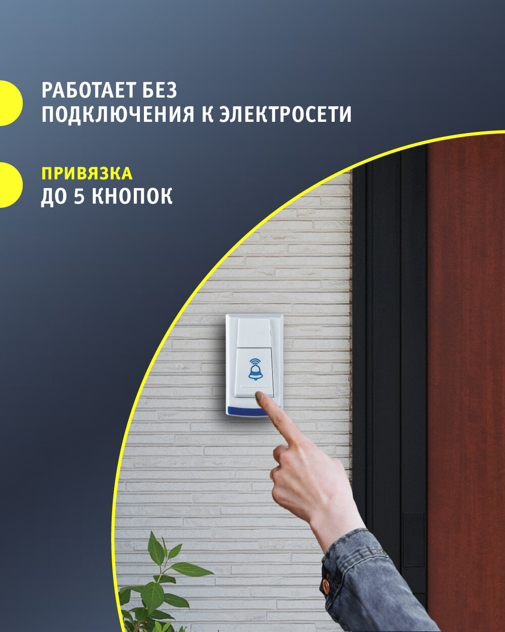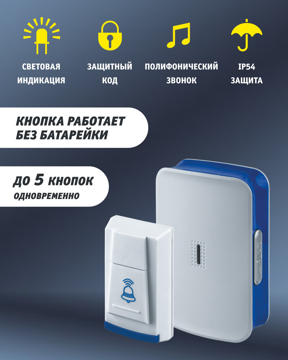 Откройте дверь к миру комфорта и безопасности с нашим беспроводным дверным звонком! Этот умный гаджет спроектирован для использования как в квартире, так и для уличных условий, обеспечивая непревзойденную удобство и качество. Отличительной чертой звонка от Navigator является звонкий и чистый звук, который не позволит пропустить ни одного гостя или курьера. Использование беспроводной технологии облегчает установку – нет необходимости бурить стены прокладывать кабели. Ваш новый дверной звонок можно легко прикрепить к любой двери, не нарушая ее целостность, для его работы вам лишь потребуется приобрести 3 пальчиковые батарейки, для кнопки батарейки не нужны, они поставляются в подарок. Для вашего звонка вы можете выбрать одну из 36 полифонических мелодий, а также регулировать его громкость (3 уровня). Радиус действия беспроводного звонка на открытом пространстве до 120 метров. Уникальный код кнопки гарантирует защиту от ложного срабатывания. Качественный высокочастотный динамик обеспечивает чистое, сбалансированное звучание. Кнопка звонка защищена от дождя и снега, поэтому может использоваться не только на входной двери в квартиру, но и отлично подойдет для калитки на даче или в частном доме.