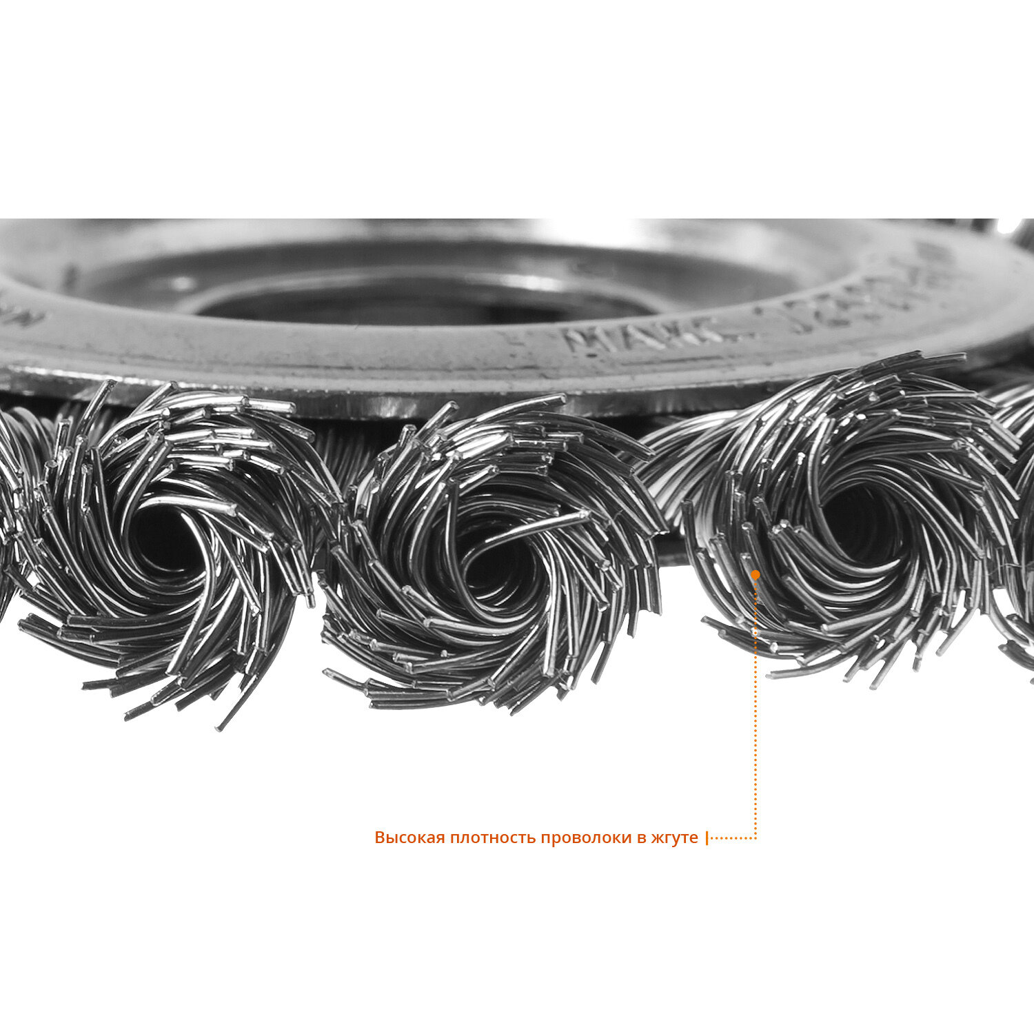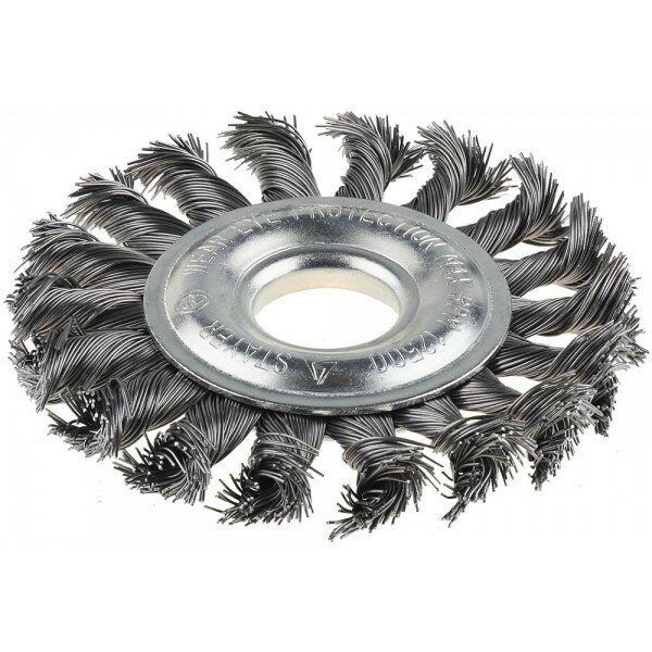 Щетка дисковая для УШМ Stayer 35190-200, сплетенная в пучки стальная закрученная проволока 0,5мм, 200мм/22мм предназначена для зачистки поверхностей в труднодоступных местах от лакокрасочных покрытий, ржавчины, окалины, различных загрязнений с применением значительных усилий, а также для зачистки сварных швов. Преимущества Щетка изготовлена из стальной жгутированной проволоки Благодаря еще более высокой жесткости сплетенного пучка и увеличенной толщине проволоки щетка обладает повышенным ресурсом Износостойкое покрытие защищает от коррозии