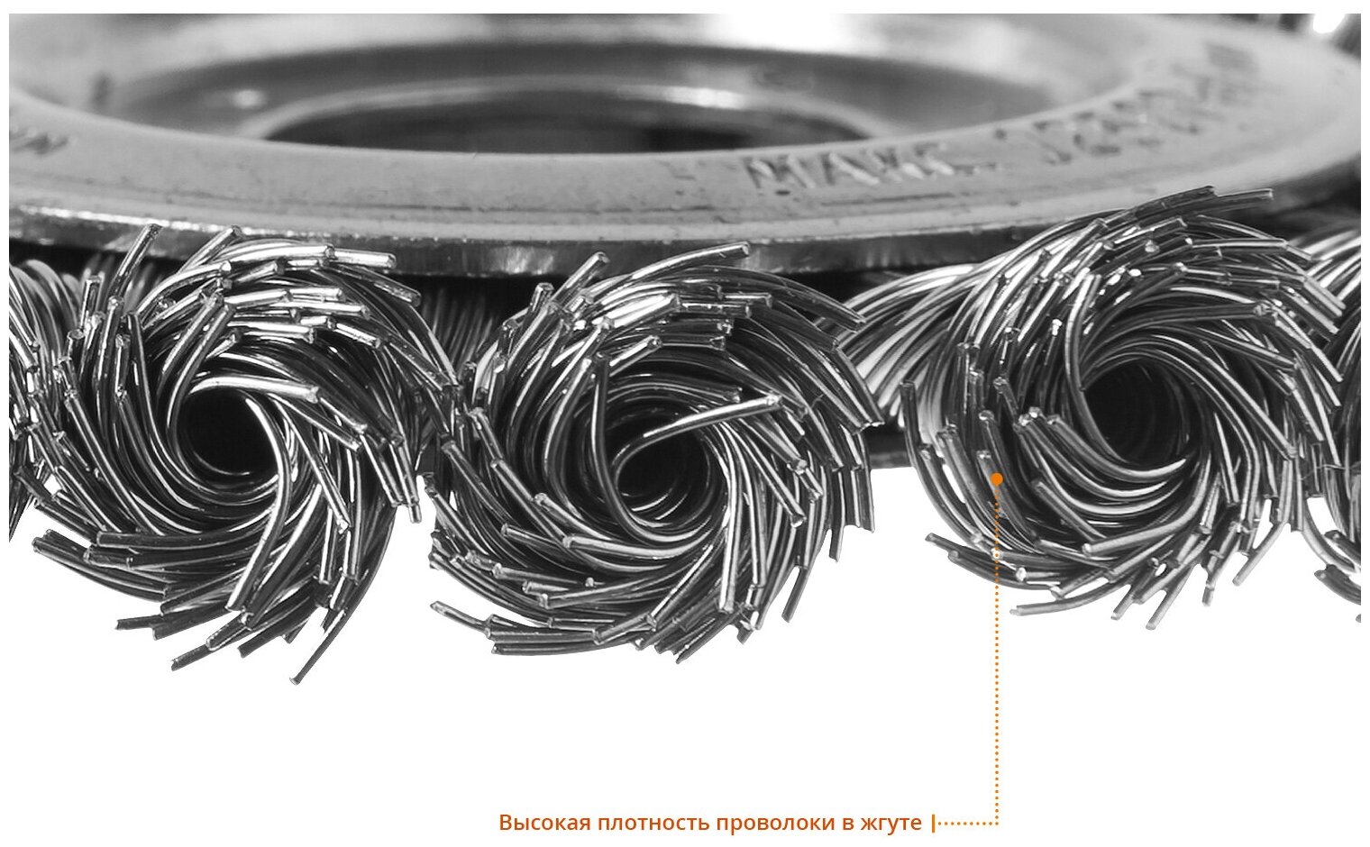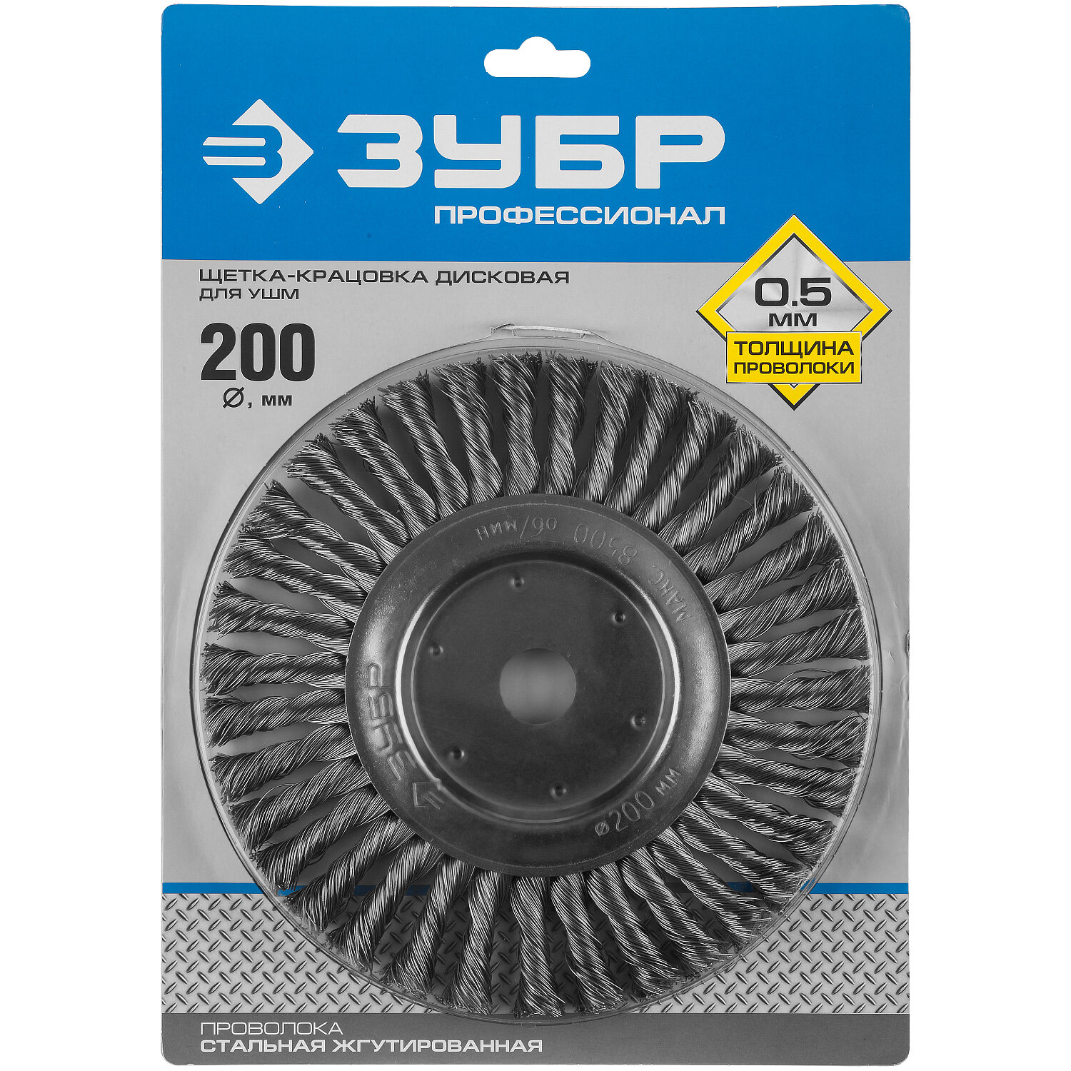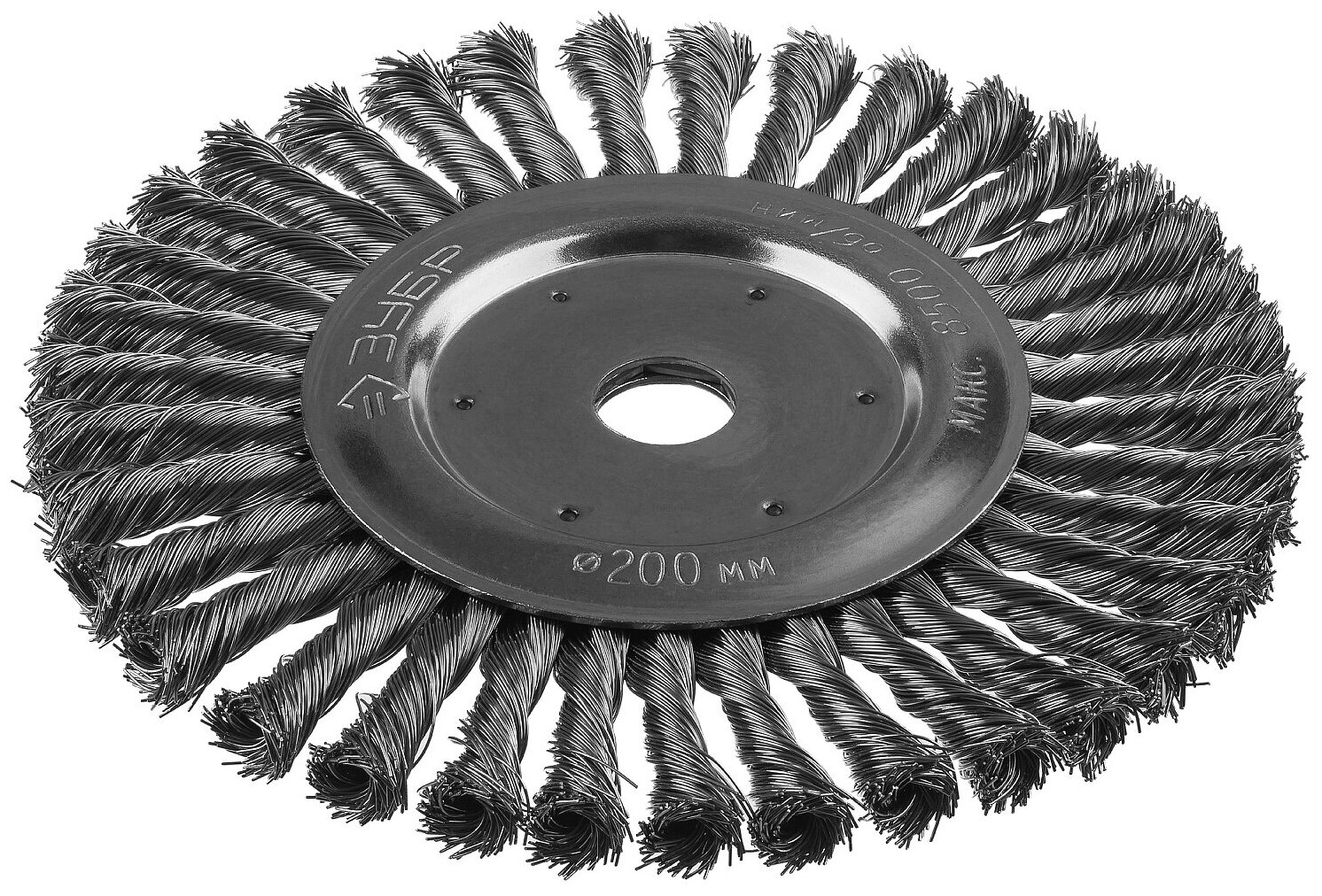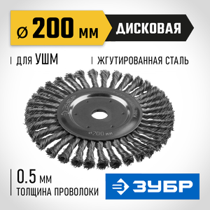 | Доп. наименование Водопад | Щетка дисковая Зубр Профессионал 35190-200_z02 для УШМ, плетеные пучки стальной проволоки 0,5мм, 200х22мм |