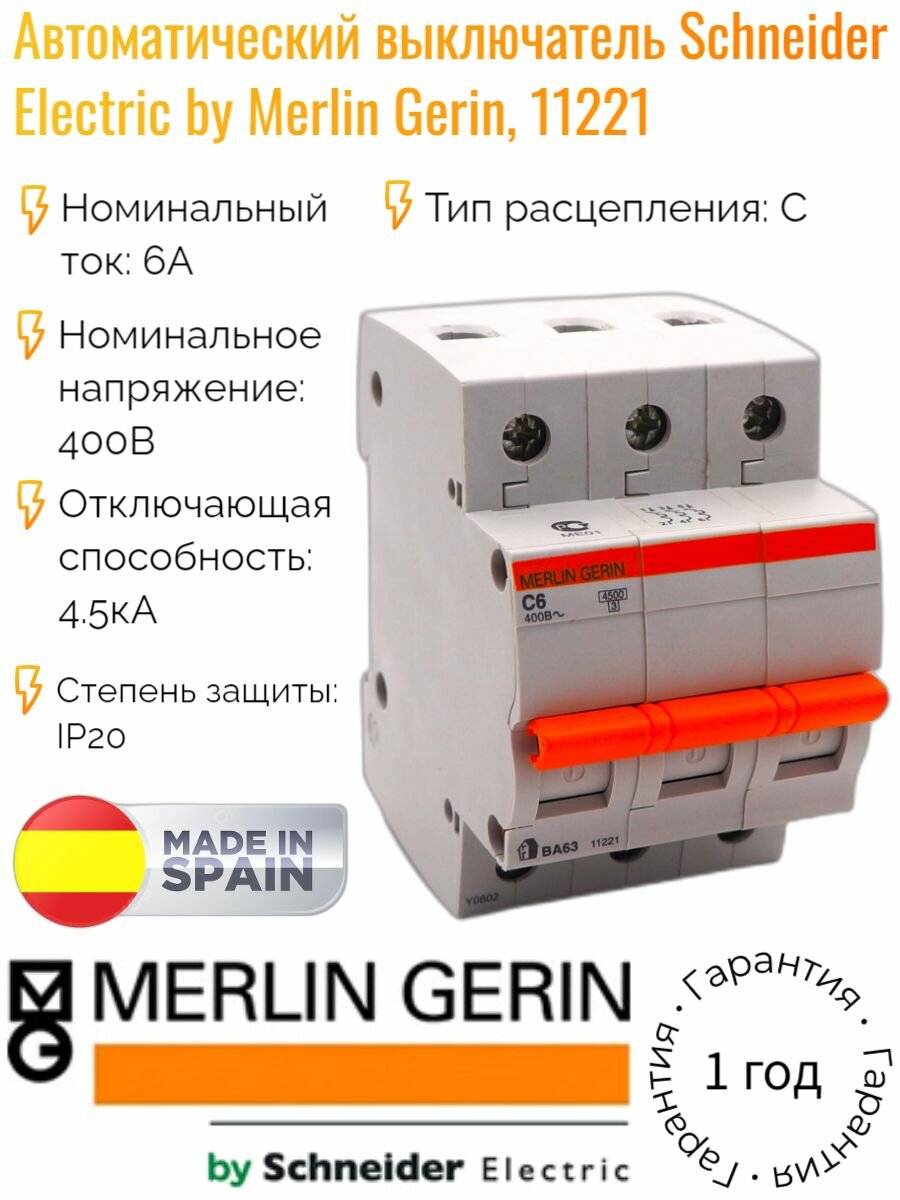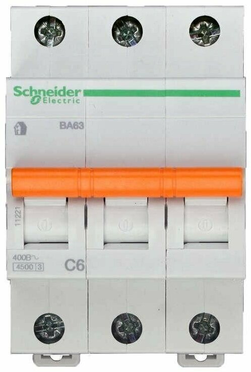 | Характеристики товара | Кол-во модулей 3 ,Номинальный ток 6A ,Кол-во полюсов 3P ,Отключающая способность 4,5 kA ,Класс срабатывания C |