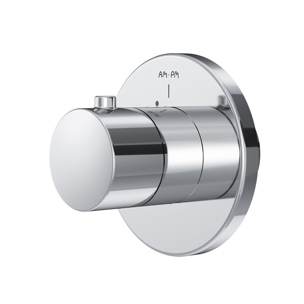 AM PM - запорный вентиль с системой встраивания. Предназначен для направления потока воды в душ. Трехпозиционный рычаг регулирует горячую или холодную воду, и перекрывает поток воды. Устройство предназначено для встраивания в стену на жесткую подводку стандарта G 1/2.