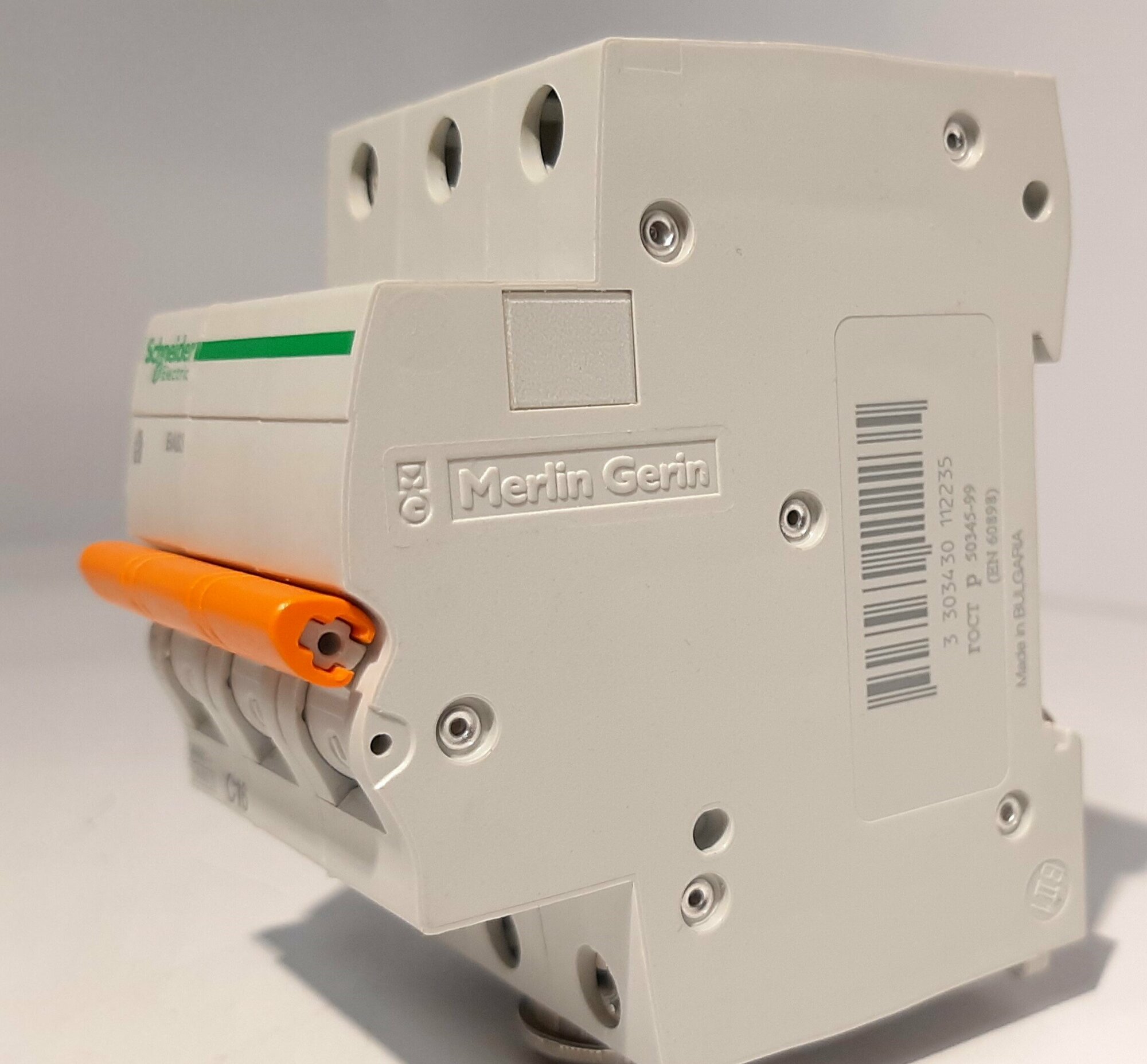 Автомат Schneider Electric ВА63 cерии Домовой предназначен для защиты людей от тока утечки, коротких замыканий, защиты оборудования и электропроводки в случае перегревов при нарушении изоляции.Высокотехнологичный корпус устройства имеет универсальный винт для клеммы крепления, клеммные зажимы, не допускающие касаний токоведущих частей выключателей и двухпозиционный фиксатор крепления. На лицевой части автомата достаточно места для того, чтобы там разместить этикетки с идентификацией сети. Вся продукция изготовлена на заводах концерна Schneider Electric, соответствует требованиям госта.Стандарты IEC 60068-1,60898-1; МЭК 60529.Технология расцепителя: термомагнитный.Частота сети: 50/60 Гц.Предел срабатывания электромагнитного расцепителя: 5.10 x In.[Ics] номинальная рабочая отключающая способность: 4500 kA 100 % x Icn согласно EN/IEC 60898-1.Монтажная опора: DIN-рейка.Максимальное сечение входящего кабеля: 25 мм².Механическая износостойкость: 20000 циклов.Относительная влажность: 95 % at 55 °C.Рабочая температура окружающей среды : -25…60 °C.Габариты:81х54х78,5 мм.