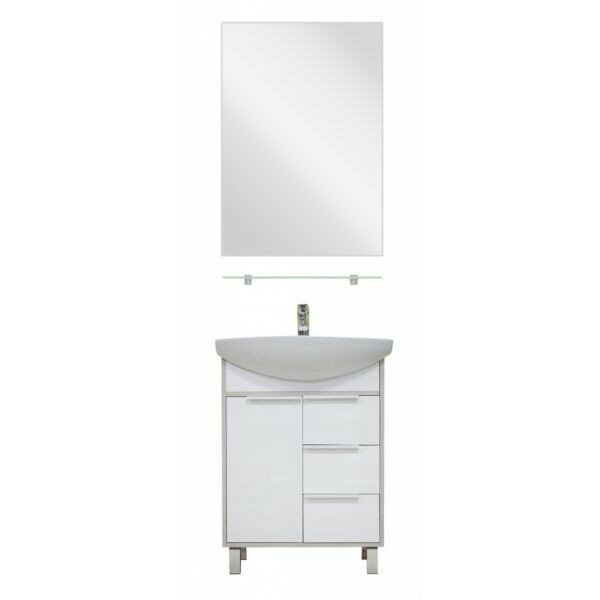 Белоснежный цвет фасадов в сочетании со вставками и боковыми стенками Ясень фабрик придадут вашей ванной комнате ощущения свежести и уюта. Благодаря лаконичным белым ручкам на тумбе и отсутствию лицевой фурнитуры на шкафчике коллекция универсальна, впишется в любую ванную комнату.