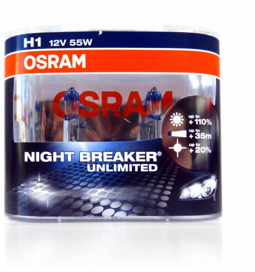 - Галогенная лампа Osram H1 NIGHT BREAKER UNLIMITED 12V 64150NBU-HCB DUO (2шт.)
