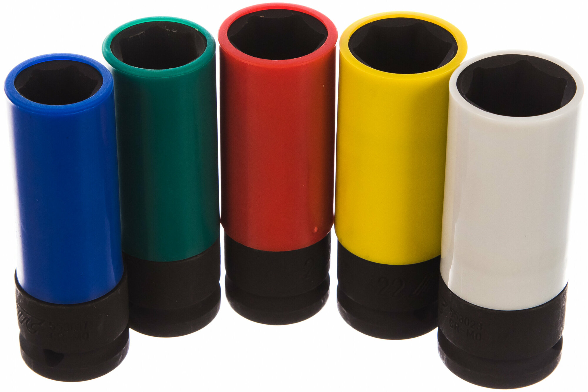 Ударные головки с тонкими стенками предназначены для установки/снятия глубокопосаженных гаек на литых дисках.Оснащены внешней защитной пластиковой гильзой для безопасного монтажа/демонтажа дисков.Технические характеристики JTC-:Материал: хром-молибденовая сталь.Длина: 87 мм.Размер:17 мм – черная головка, синяя пластиковая гильза19 мм – черная головка, зеленая пластиковая гильза21 мм – черная головка, красная пластиковая гильза22 мм – черная головка, желтая пластиковая гильза23 мм – черная головка, белая пластиковая гильза.Характеристики JTC-:Ширина, м: 0.15Высота, м: 0.055Длина, м: 0.21Вес, кг: 1.532