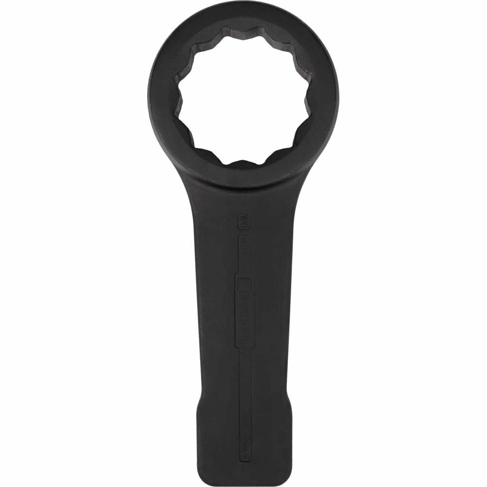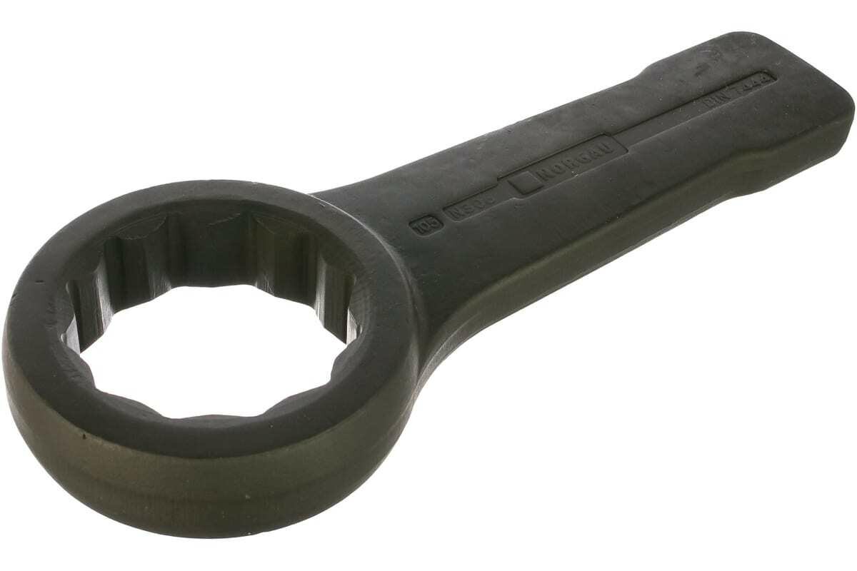 Накидной ударный гаечный ключ NORGAU Industrial предназначен для слесарных работ, монтажа/демонтажа сложных резьбовых соединений: заржавевших болтов и гаек.. Популярен для оснащения автомастерских и производственных цехов.. Подходит для частного использования.. Выполнен из закаленной хромомолибденовой (CrMo) стали, которая отличается повышенной прочностью и износостойкостью.. Матовое фосфатирование защищает ключ от появления коррозии.. Обеспечивает комфортное удерживание инструмента в руках, даже если он загрязнен смазочными материалами.. Используется совместно с молотком или кувалдой: ударный ключ позволяет справиться с самым трудным прикипевшим крепежом.. Конструкция инструмента снижает вибрацию, исключает деформацию ключа даже при сильных ударах.. Специальный 12-гранный профиль обеспечивает оптимальную передачу усилия и сохранность крепежа.. Ключ произведен в соответствии с европейским стандартом качества DIN 7444.. Процессы ковки, термической обработки и материалы изготовления гарантируют инструменту длительный срок службы.. Размер: 105 мм. Длина: 435 мм..