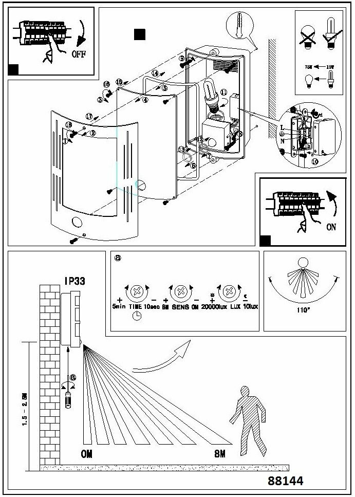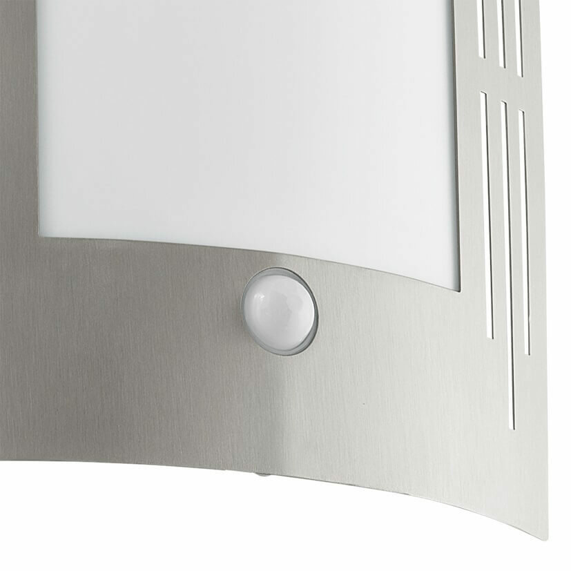 Настенный светильник уличный с датчиком движения City - продукт известной компании Eglo (Австрия). Имеет максимальную мощность 60 Вт, освещает площадь до 3 кв. м. Отлично подойдет для таких мест, как дача, веранда и беседка, фасад. Впишется в интерьеры следующих стилей: модерн, техно.