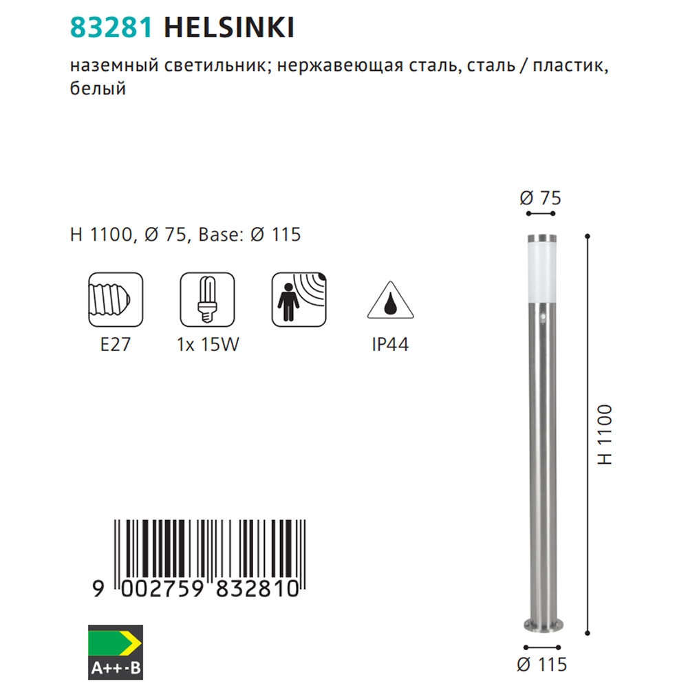 Наземный фонарь уличный с сенсорным выключателем Helsinki - продукт известной компании Eglo (Австрия). Имеет максимальную мощность 15 Вт, освещает площадь до 1 кв. м. Отлично подойдет для таких мест, как дача, сад. Впишется в интерьеры следующих стилей: модерн, техно.