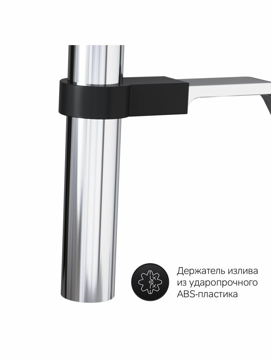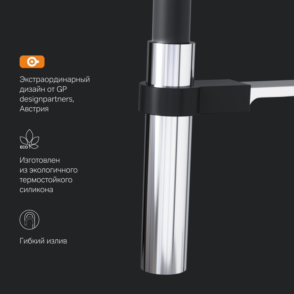 Смеситель для кухни с гибким изливом, удобен в использовании и позволяет легко мыть крупную посуду или наполнять водой емкости любого размера. Термостойкий силикон выполнен без содержания вредных для здоровья веществ. Современный дизайн смесителя подойдет практически для любой кухни.