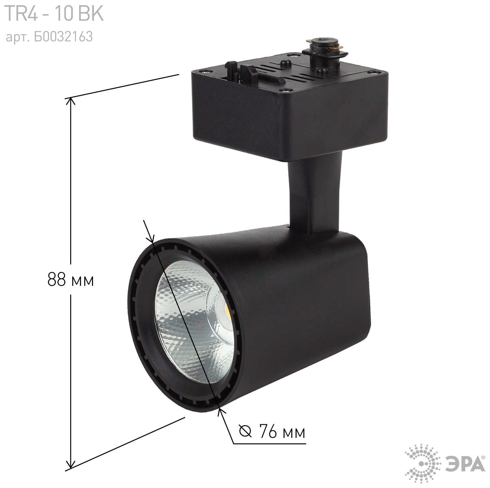 Эра Б0032163 Трековый светодиодный светильник ЭРА TR4 предназначен для монтажа на шинопроводе. Применяется для декоративной подсветки, освещения выставочных залов, магазинов и торговых центров. Основные преимущества: абсолютно равномерное свечение, отсутствие пульсаций светового потока и высокая энергоэффективность.