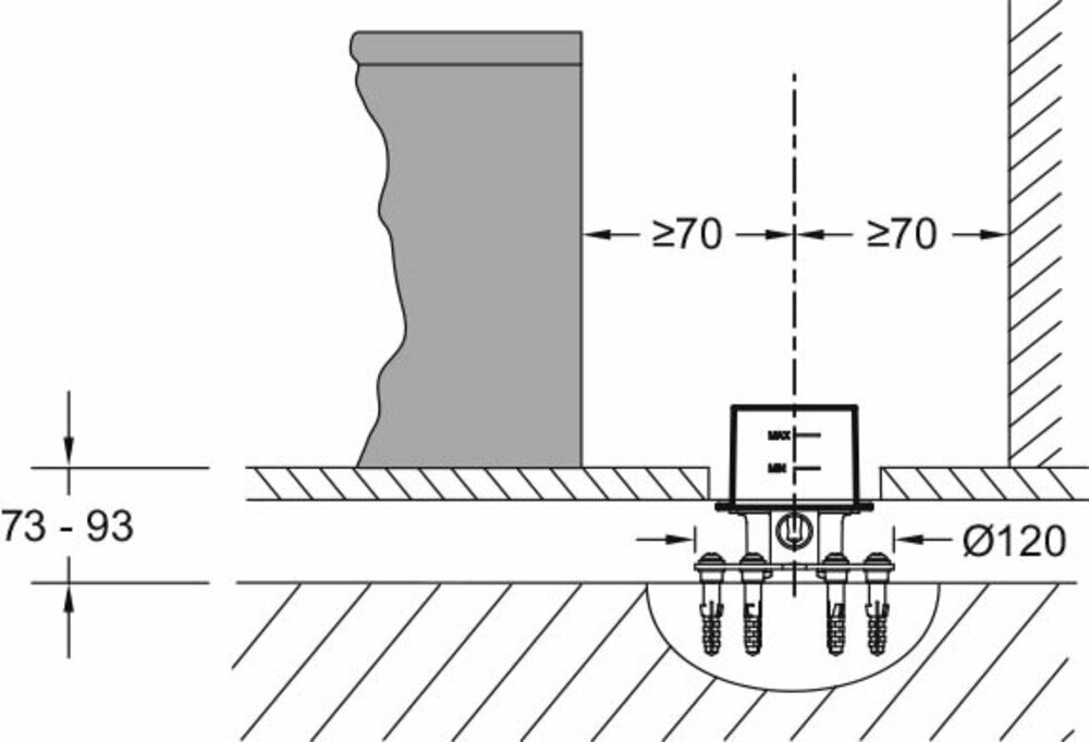 Монтаж: в пол. В первую очередь устанавливается напольная база, смеситель может быть установлен в конце работ.