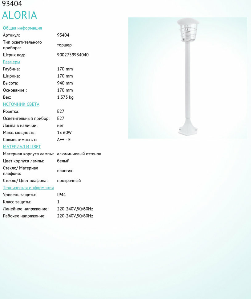 Сервис сравнения цен СкидкаГИД предлагает сравнить цены на товар «Светильник уличный Eglo 93404»