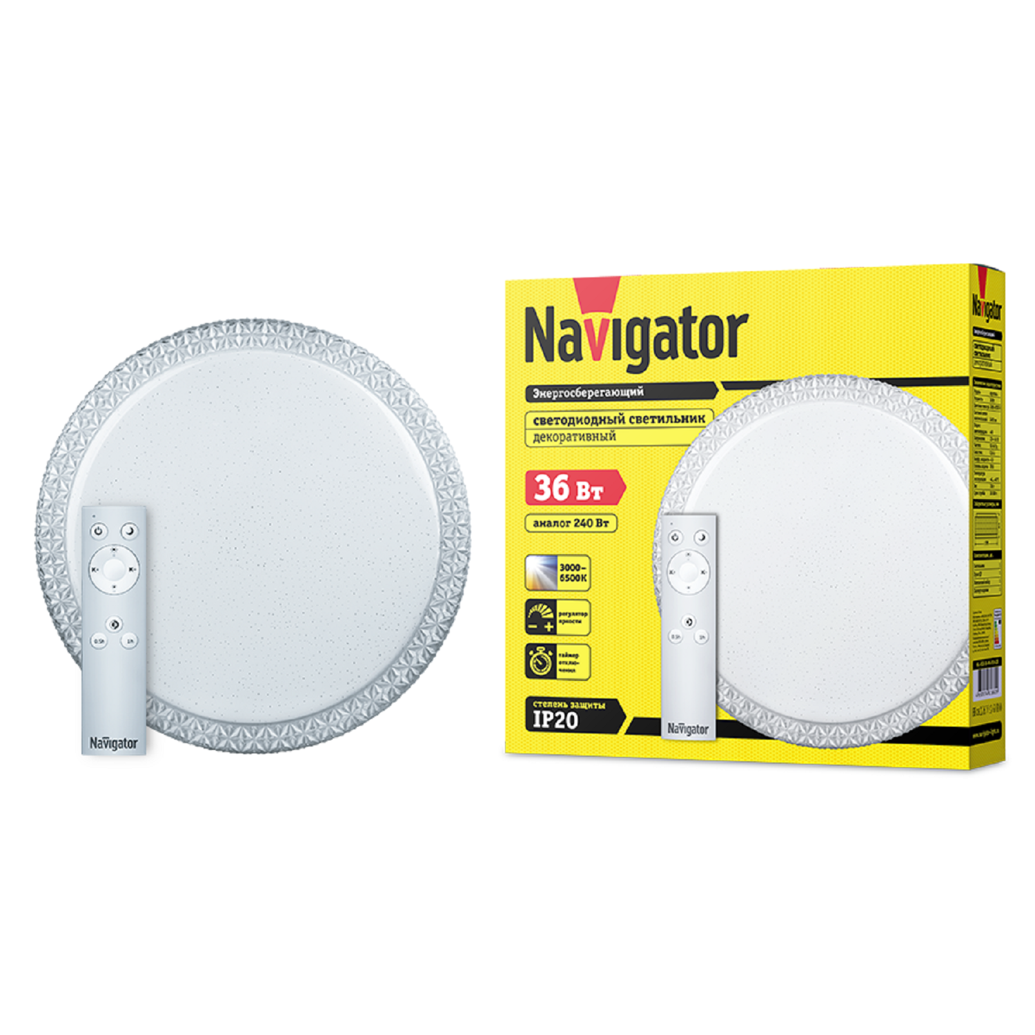 Светильник Navigator 61 662 nbl-rc02-36-mk-ip20-led
