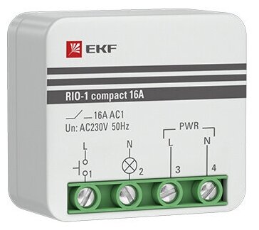 Импульсное реле EKF PROxima RIO-1 compact 10А используется для управления по двухпроводной сети осветительным и другим электротехническим оборудованием из нескольких мест при помощи параллельно соединенных выключателей без фиксации. Это позволяет упростить схему управления, уменьшить потери в сети, а также сократить количество прокладываемого кабеля по сравнению со схемой с проходными выключателями. Схема может работать с выключателями с подсветкойМатериалыКорпус изделия выполнен из АВС-пластика не поддерживающего горение.Принцип работыПри подаче импульса управляющего сигнала при замыкании одного из кнопочных выключателей выходной контакт реле N замыкается, при повторном импульсе - размыкается.Реле может применяться совместно с кнопочными выключателями с подсветкой.Реле устанавливается в распаячные коробки.