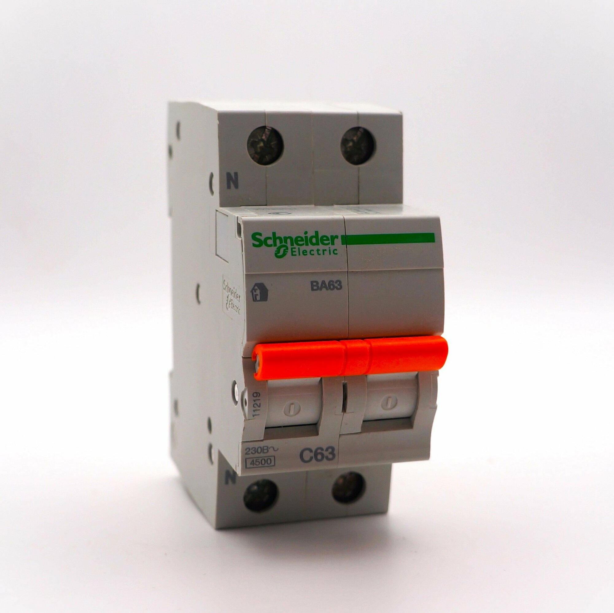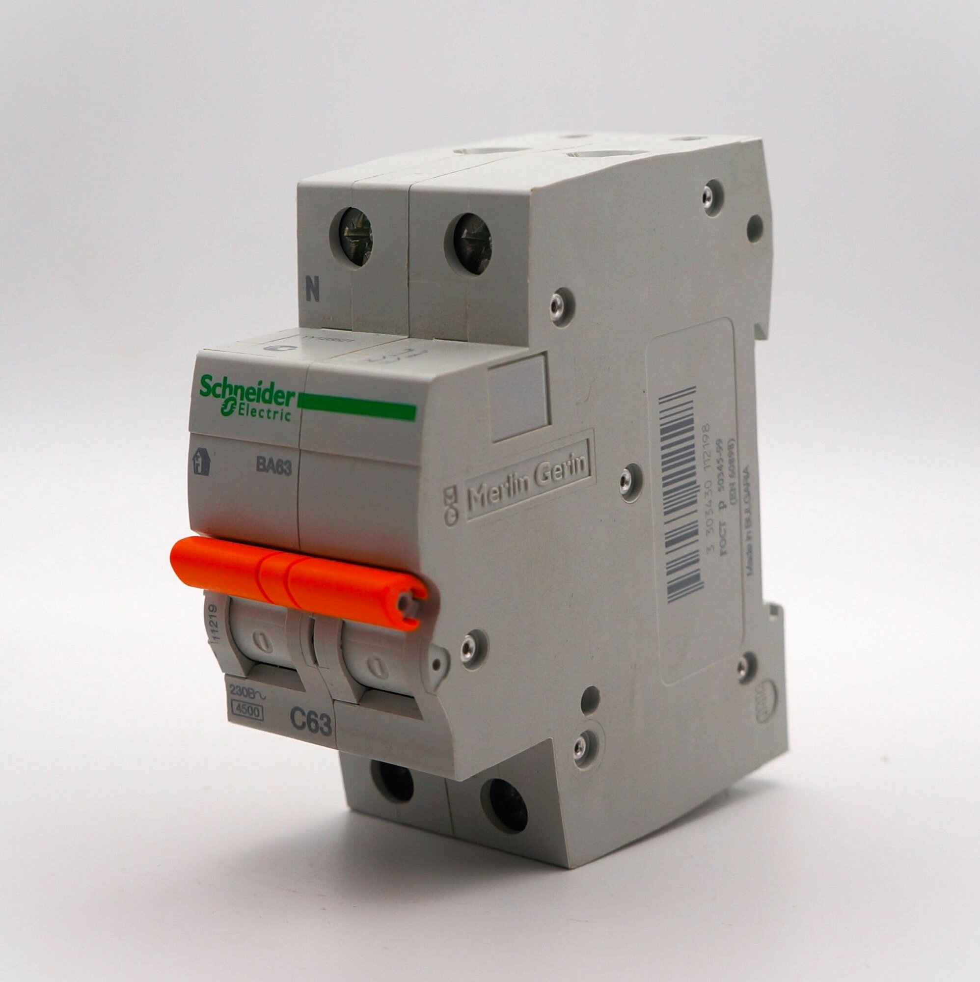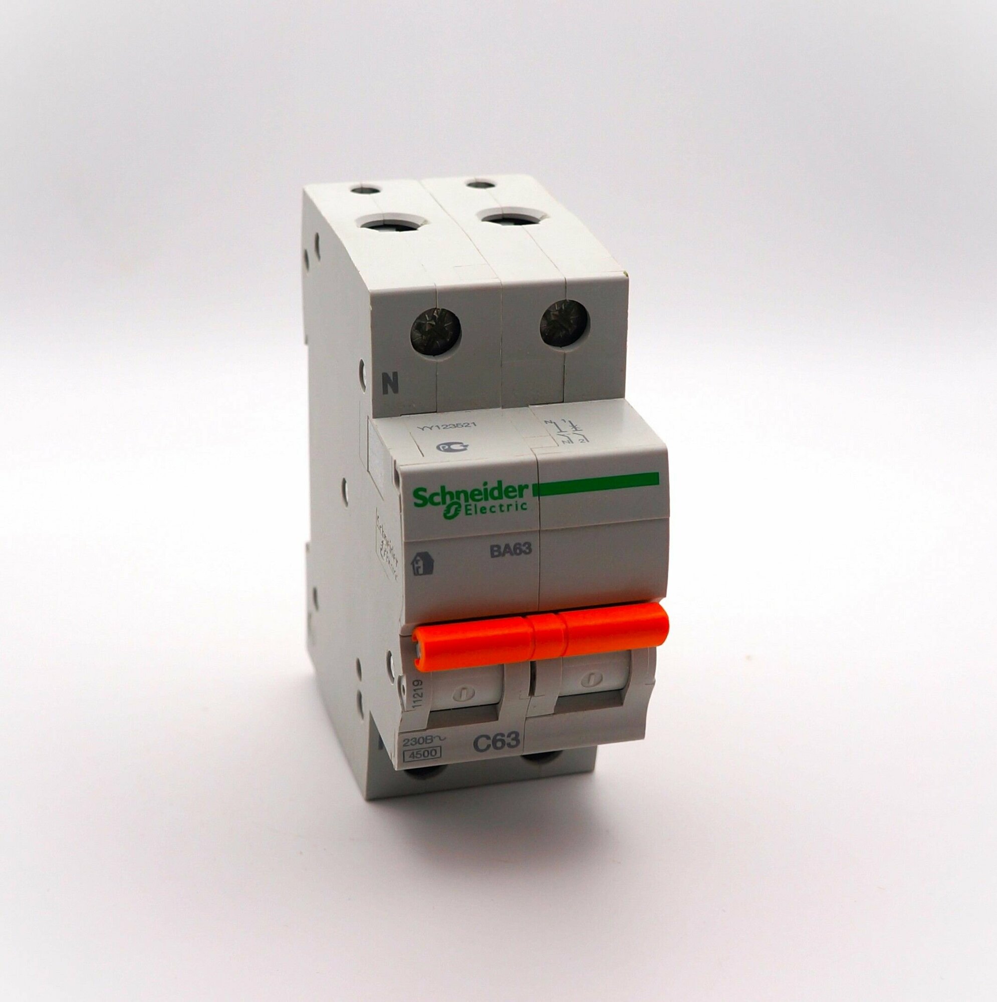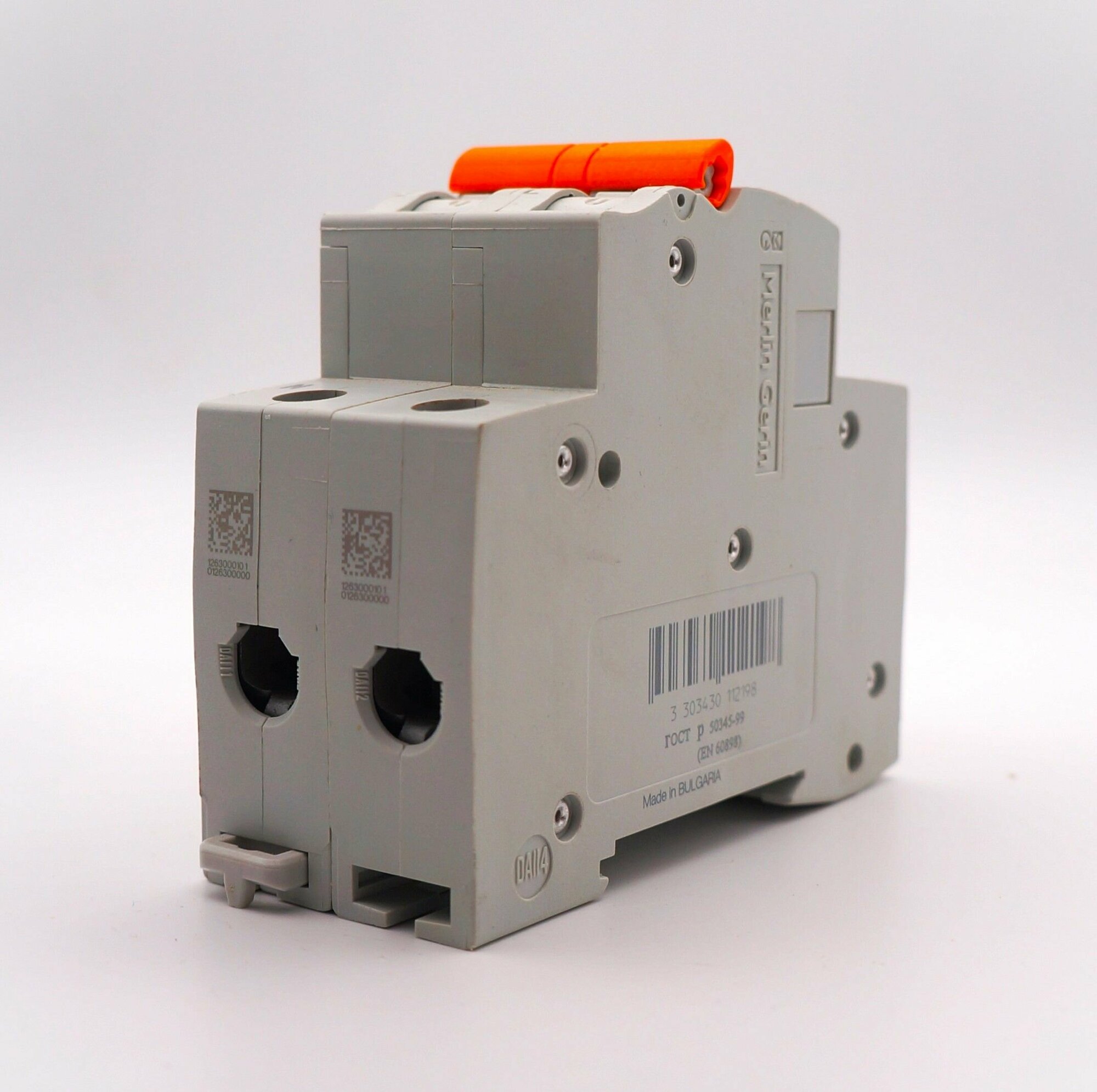 Автоматический выключатель предназначен для защиты от перегрузок и коротких замыканий, а также для оперативного управления участками электрических цепей.Класс — 3.Количество полюсов — 2.Электрическая износостойкость — 10000 циклов.Механическая износостойкость — 10000 циклов.Защита обеспечивается двумя расцепителями — электромагнитным (мгновенно срабатывает при значительном превышении тока) и тепловым (время срабатывания зависит от величины тока и составляет от нескольких секунд до нескольких часов).Характеристика срабатывания электромагнитного расцепителя «C» является стандартной и наиболее используемой, обычно применяется для защиты распределительных и групповых цепей со значительными пусковыми токами и смешанной нагрузкой (освещение, розетки и т. д.). Срабатывание электромагнитного расцепителя происходит в том случае, если ток превышает номинальный в 5-10 раз.Отключающая способность указывает на максимальный ток короткого замыкания, который автоматический выключатель способен выдержать, сохранив свою работоспособность. Значение 4 500 А обычно является показателем для применения в жилищном секторе.Класс токоограничения указывает на быстродействие автоматического выключателя в случае короткого замыкания. Класс 3 является самым высоким.Особенности и преимущества: — Механизм мгновенной коммутации увеличивает срок службы контактов на 30%. — Монолитная лицевая панель защищает человека от раскаленных газов при коротком замыкании, если он находится напротив щита. — Наличие 6 заклепок при коротких замыканиях является гарантией того, что автомат не нанесет вред человеку, стоящему перед аппаратом, и не повредит соседние аппараты. — Безопасные клеммы. — Много места для маркировки.