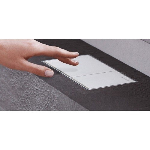 Смывная клавиша для задействования смыва из смывного бачка скрытого монтажа Geberit Omega.