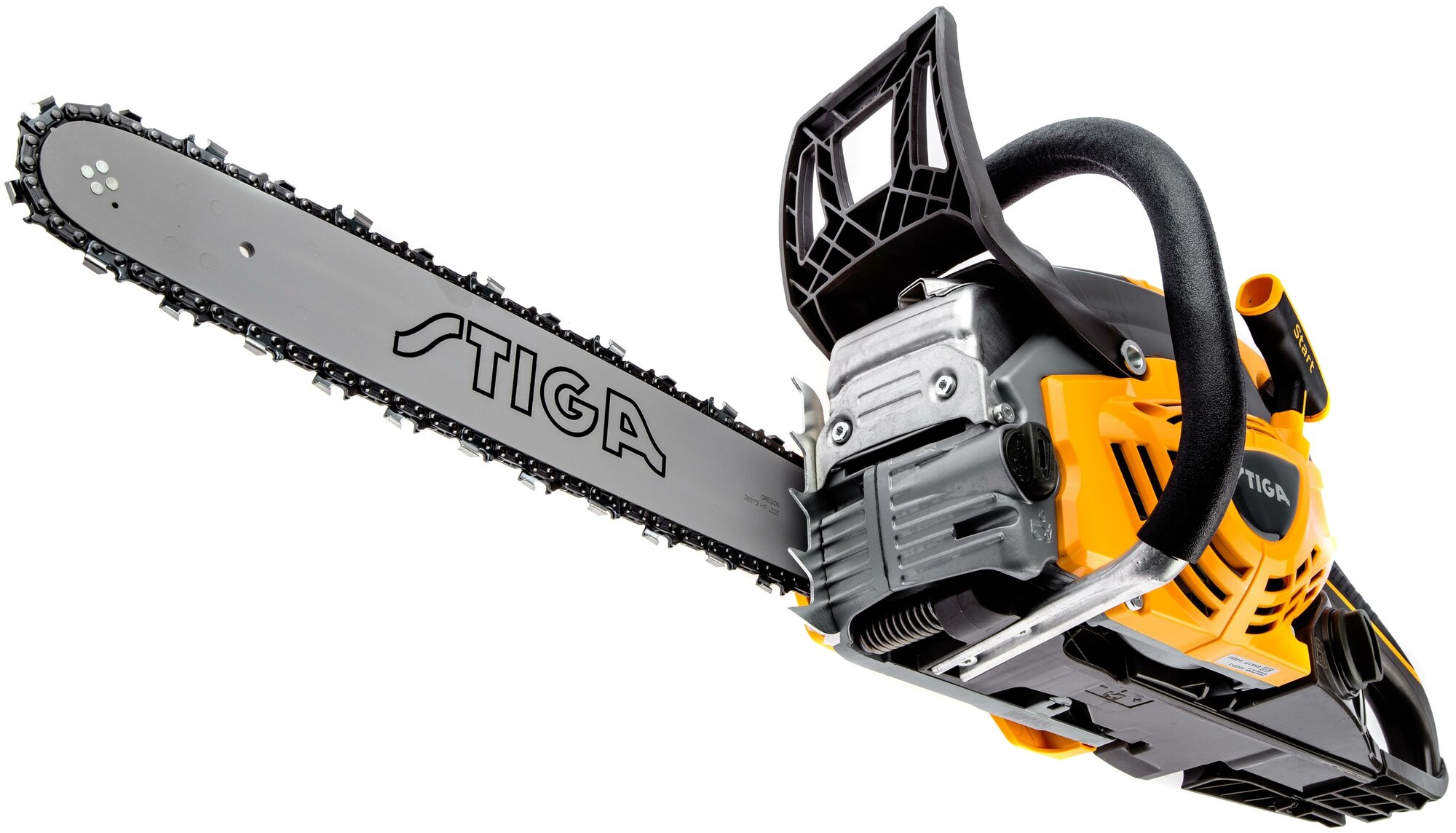 Решил когда-то на свои 40 лет (а первые 40 лет - самые сложные в жизни мальчика) сделать себе подарок. Так сложилось, что душа легла именно в данном случае к Stiga, что мы имеем - смесь технологий Штиля и Хускварны. Свои внутренние доводы подкрепил штудированием интернета и не прогадал. Продавец в одном сетевом магазине пытался втюхать мне 180 штиль в эти деньги, а все ттх имеем на уровне 250 штиля. По факту - модель по весу не самая лёгкая, мощности мне хватает (предтоп), по технике, сборке и эргономике вопросов совсем никаких, воздушный фильтр (пластиковый) продул компрессором и голова не болит, качественная орегоновская шина, качественная орегоновская цепь, гайки-непотеряшки, удобно, что ключ всегда на месте, классная антивибра. Масло надо хорошее, только синтетика не ниже FC (нынче с таким сложнее, но найти реально), никаких маннолов и прочих хускварн. Боевое крещение началось с уборки 15-20 метрового тополя, там пришёл к выводу, что нужны две цепи в хозяйстве. Глаза боятся, руки делают, прекрасный инструмент помагает. Масло для цепи сразу купил 5л. Периодически чищу и смазываю шину, продуваю всё (самому несложно), доволен, не прогадал с маркой и моделью. Кому надо просто, жёстко, мощно, без лишних переплат за более именитый брэнд - моя рекомендация! Послужит, поможет и очень выручит! Сейчас вот убираю 70-летнюю яблоню, пришло её время, не выдержала шквала.