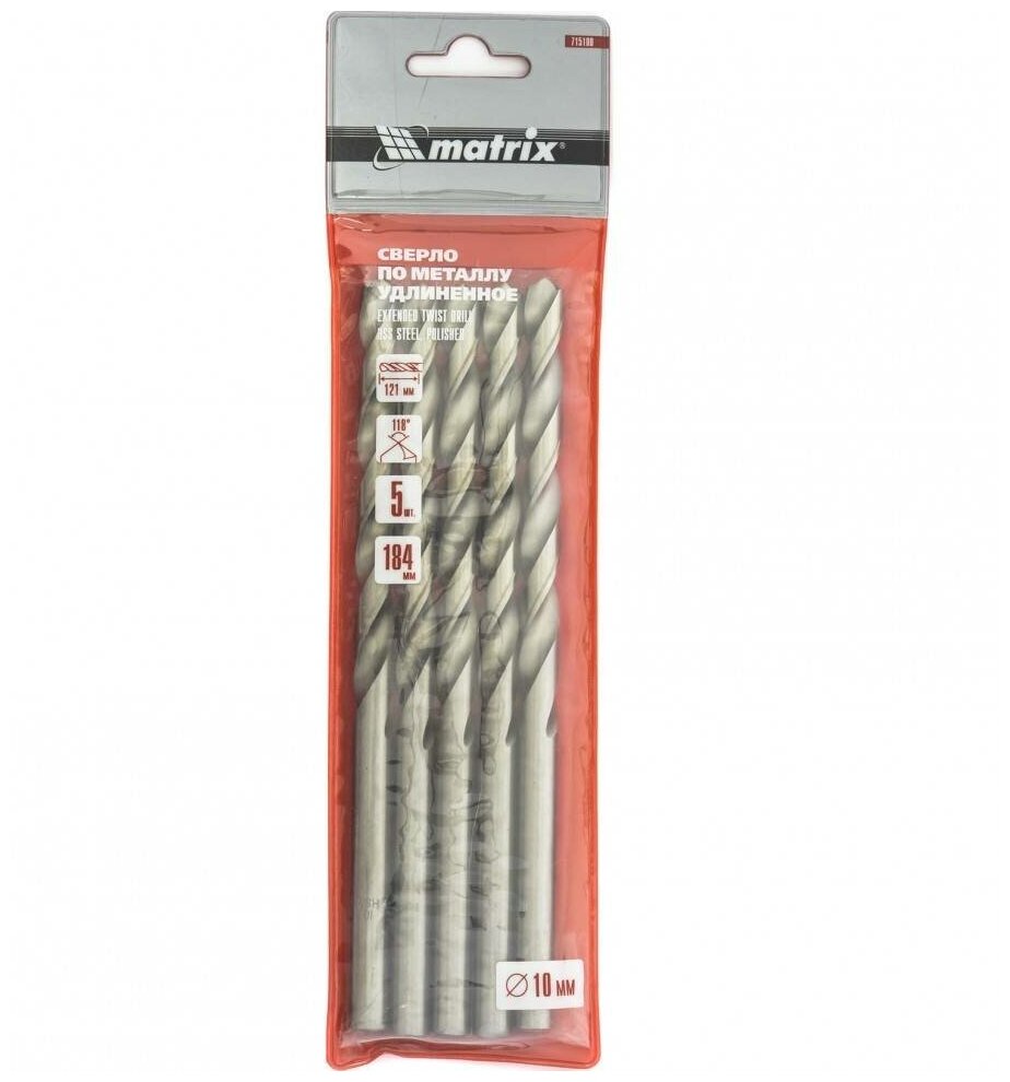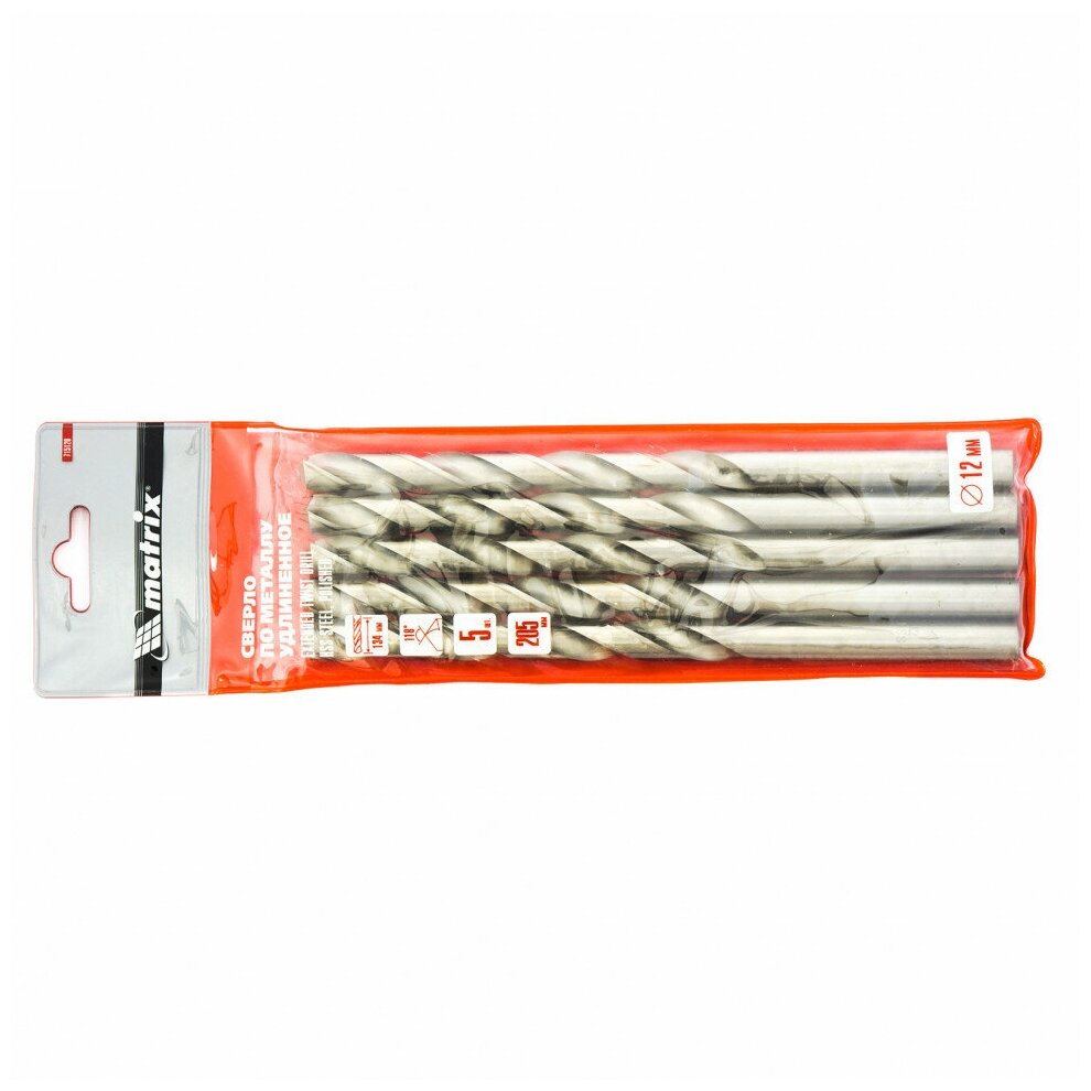 Сверло по металлу, 12,0 х 205 мм, полированное, удл., HSS, 5 шт. цил. хв.// Matrix