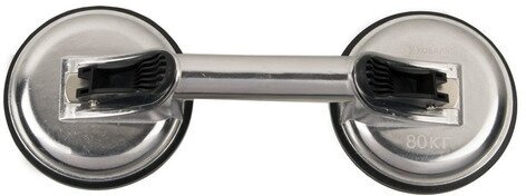 Зажим из алюминия гарантирует удобное и устойчивое использование инструмента. Присоски изготовлены из резины высшего класса, благодаря чему обеспечивается точная и безопасная эксплуатация. Изделие состоит из двух присосок. Вес удерживается до 80 кг, диаметр присосок - 118 мм.