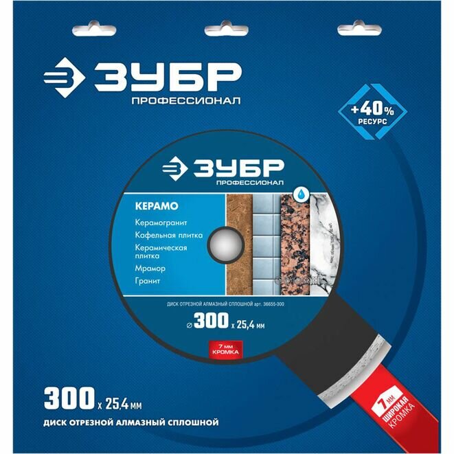 | Доп. наименование Водопад | Диск алмазный отрезной сплошной Зубр Профессионал 36655-300 300 мм |