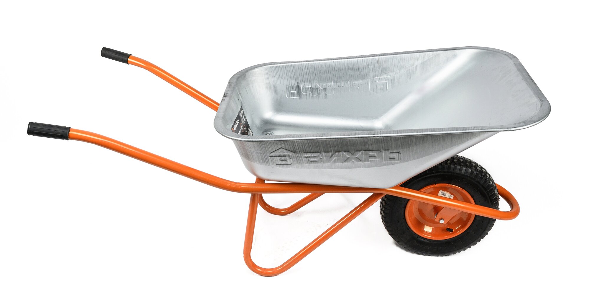 | Прочие особенности и свойства | Садово-строительная тачка Вихрь Т90-1 используется для бытовых нужд. Пригодна для транспортировки песка, кирпичей, цемента, скошенной травы, веток, садового мусора. Применяется на приусадебных участках, строительных и производственных площадках. Основание, изготовленное из металла толщиной 0,8 мм, способно выдерживать груз до 200 кг. Лакокрасочное покрытие обеспечивает защиту от коррозии в условиях повышенной влажности. Глубокий металлический кузов объемом 90 л изготовлен из оцинкованной стали. Стенки устойчивы к деформации под воздействием высоких нагрузок., , Одноколесная модель отличается маневренностью, способна перевозить грузы по узким и извилистым дорожкам. Пневматическое колесо диаметром 380 мм состоит из резиновой камеры, заполненной воздухом и защищенной протектором. Оно гасит толчки и удары, обеспечивает мягкий ход по неровной поверхности. Наличие подшипника придает крепежному элементу износоустойчивость при интенсивных нагрузках, повышает проходимость., , Садово-строительная тачка Вихрь Т90-1 имеет опору для устойчивой вертикальной фиксации. Надежное сцепление рамы и кузова придает конструкции жесткость. Прорезиненные накладки на ручки обеспечивают надежный хват и предотвращают скольжение. |