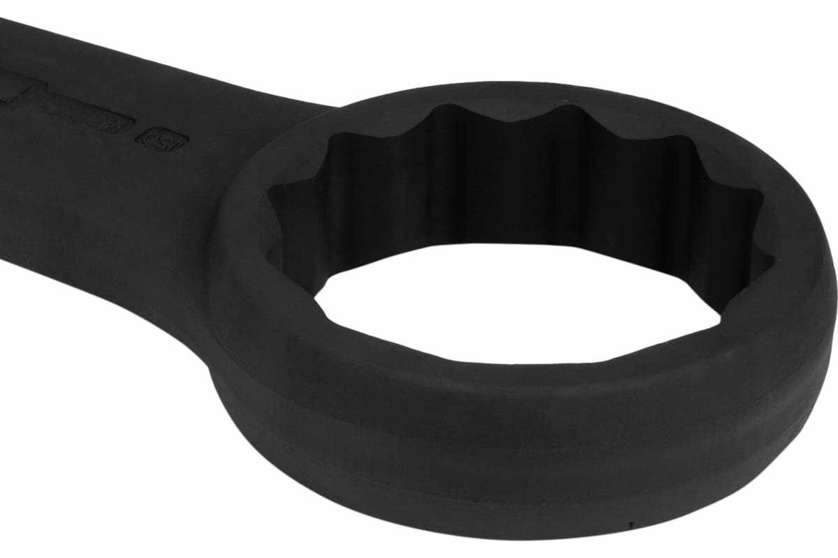 Накидной ударный гаечный ключ NORGAU Industrial предназначен для слесарных работ, монтажа/демонтажа сложных резьбовых соединений: заржавевших болтов и гаек.. Популярен для оснащения автомастерских и производственных цехов.. Подходит для частного использования.. Выполнен из закаленной хромомолибденовой (CrMo) стали, которая отличается повышенной прочностью и износостойкостью.. Матовое фосфатирование защищает ключ от появления коррозии.. Обеспечивает комфортное удерживание инструмента в руках, даже если он загрязнен смазочными материалами.. Используется совместно с молотком или кувалдой: ударный ключ позволяет справиться с самым трудным прикипевшим крепежом.. Конструкция инструмента снижает вибрацию, исключает деформацию ключа даже при сильных ударах.. Специальный 12-гранный профиль обеспечивает оптимальную передачу усилия и сохранность крепежа.. Ключ произведен в соответствии с европейским стандартом качества DIN 7444.. Процессы ковки, термической обработки и материалы изготовления гарантируют инструменту длительный срок службы.. Размер: 120 мм. Длина: 435 мм..