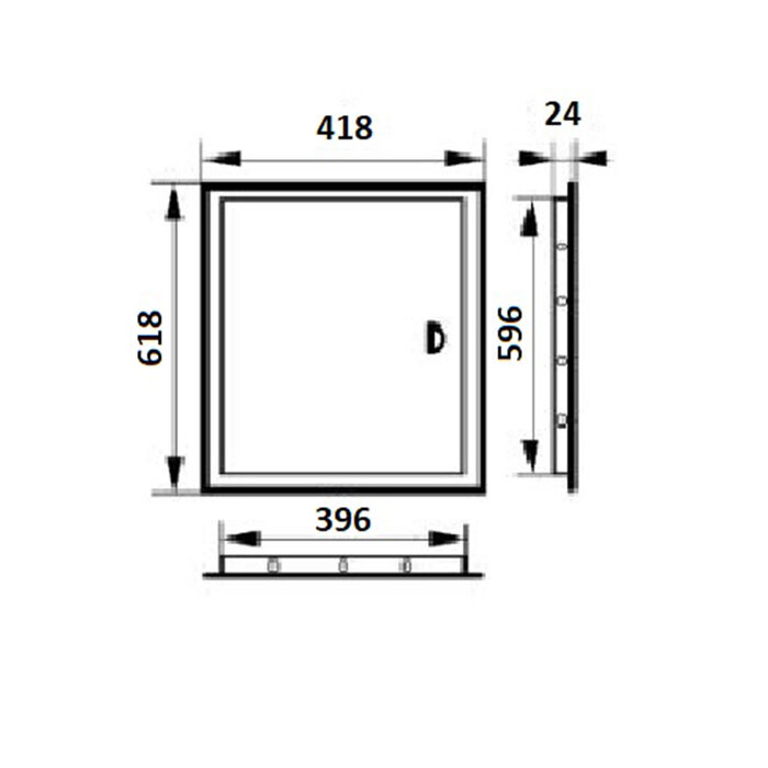 Размер с рамкой 418х618 мм, фланец 396х596 мм.