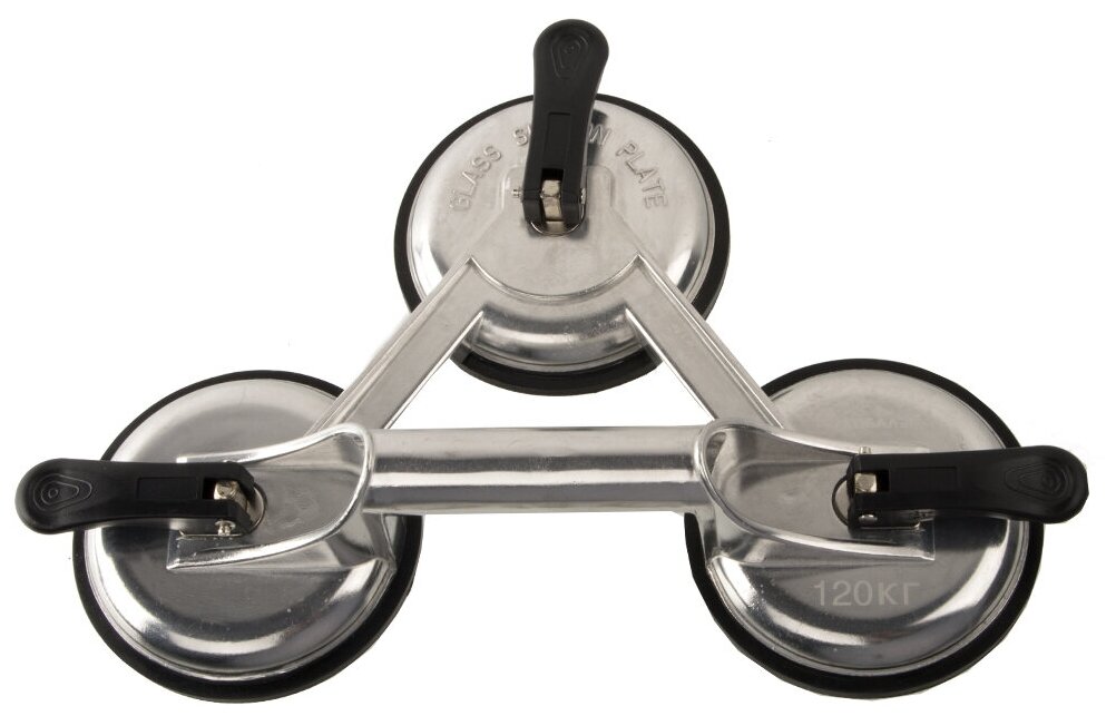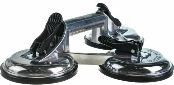 Зажим из алюминия гарантирует удобное и устойчивое использование инструмента. Присоски изготовлены из резины высшего класса, благодаря чему обеспечивается точная и безопасная эксплуатация. Изделие состоит из трёх присосок. Вес удерживается до 120 кг.