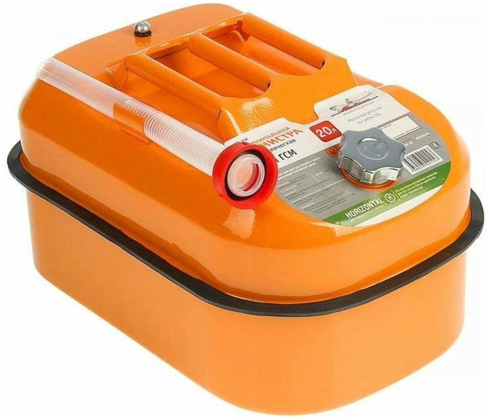 Горизонтальная канистра имеет самую устойчивую форму для транспортировки и хранения жидкостей. Такую канистру сложно опрокинуть. Канистра имеет металлическую крышку. Внутренняя поверхность обработана специальным составом против коррозии. В комплекте имеется специальный пластиковый носик для удобной заправки автомобиля.