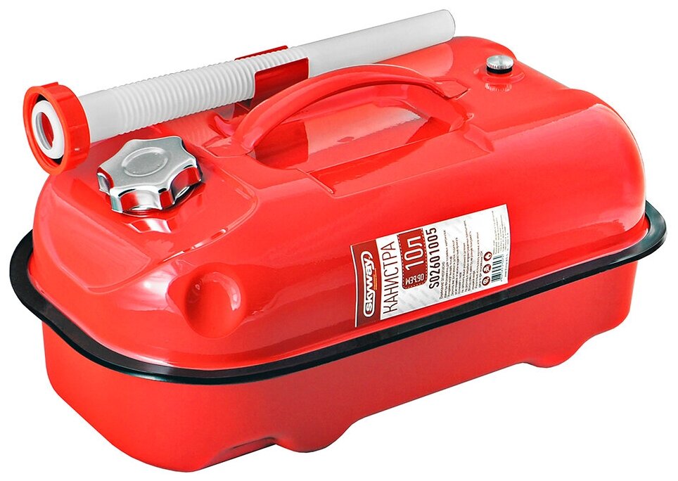 Горизонтальная форма канистры придает ей высокую устойчивость предотвращает ее перемещение в багажнике при интенсивном движении, также снижая уровень нежелательного шума. Форма профиля резьбы предохраняет содержимое от протекания. Специализированная форма носика исключает проливание жидкости. В комплект канистры входит трубка-лейка, что позволяет наполнить любую неудобно расположенную емкость.