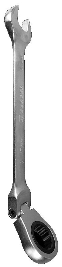 Ключ трещоточный с шарниром BERGER, полностью выполнен из инструментальной хромванадиевой стали, с антикоррозийным покрытием «Satin» (матовый хром). Храповый механизм трещоточных ключей BERGER имеет: 72 зубца, изготовлен из хроммолибдена (Cr-Mo). Твердость материала храпового механизма: 58HRC. Работает с болтом и гайкой: M10Преимущества DIN 899 Сталь: Cr-V Твердость: 44-49 HRC Сталь храпового механизма: Cr-Mo Твердость храпового механизма: 58 HRC Угол наклона рожков 15° Шаг 5° (72 зубца) Шарнир (Ход шарнира 180°) позволяет повысить функциональность ключа при работе в труднодоступных местах Двухсторонняя маркировка ключа облегчает идентификацию
