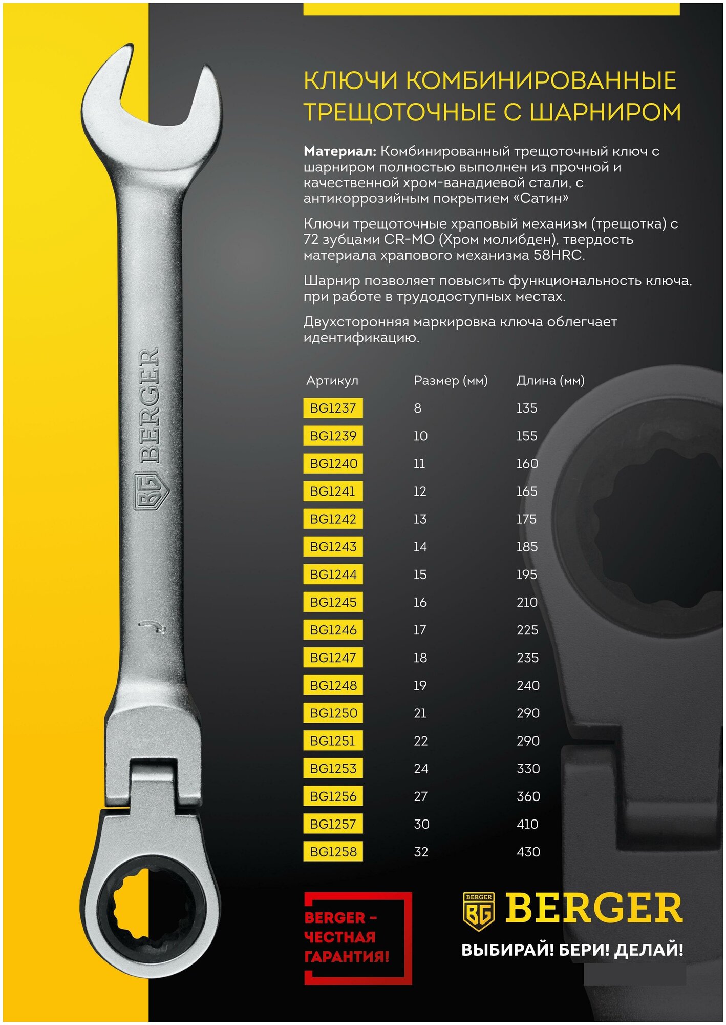 Комбинированный трещоточный ключ Berger BG Bg1246