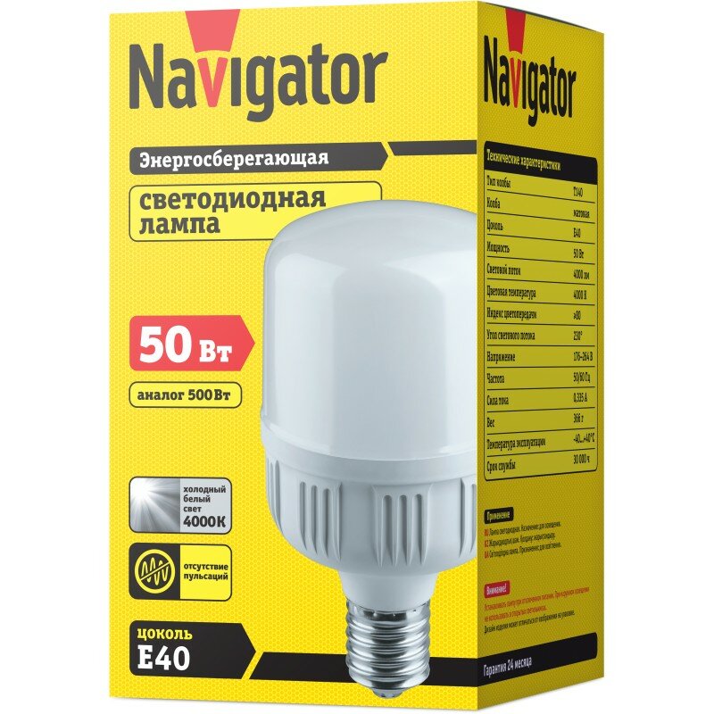 На сегодняшний день товар «Лампа светодиодная Navigator 61 482 nll-t140-50-230-840-e40» можно купить с кешбеком в 1 магазине: Яндекс.Маркет
