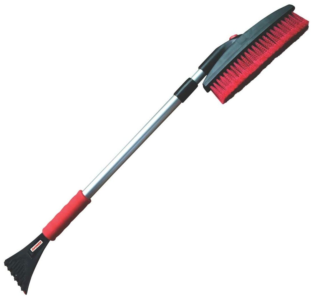 Щетка изготовлена из морозостойкого пластика. Распушенные кончики щетины придают дополнительный объем и увеличивают рабочую поверхность, а также бережно воздействуют на лакокрасочное покрытие, стекла и другие элементы автомобиля, не оставляя царапин. Телескопическая рукоятка позволяет проводить работу в труднодоступных местах. Накладки на ручке выполнены из пористого пенополипропилена, разработаны с учетом анатомического строения ладони и защищают руки при морозе.