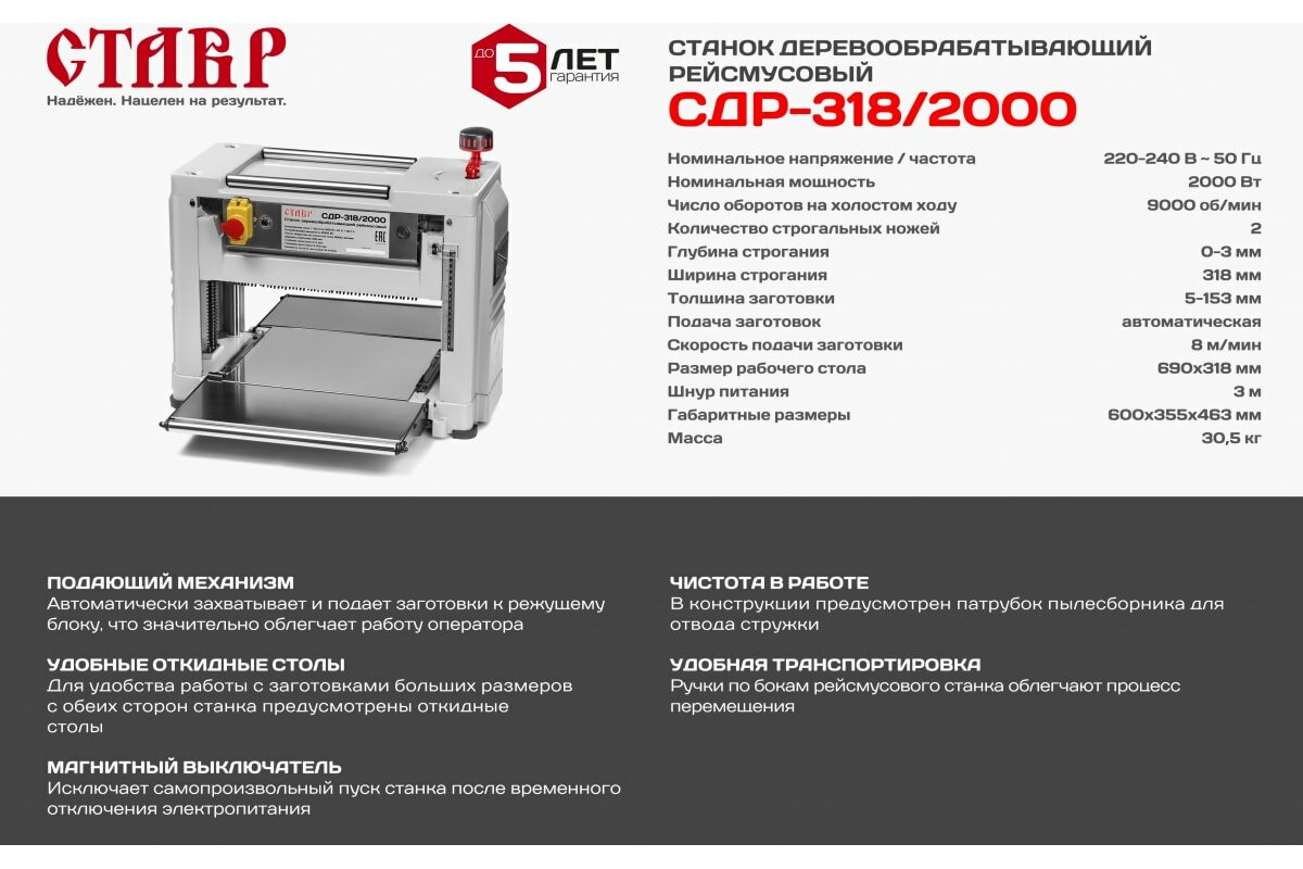 Деревообрабатывающий рейсмусовый станок Ставр СДР-318/2000
