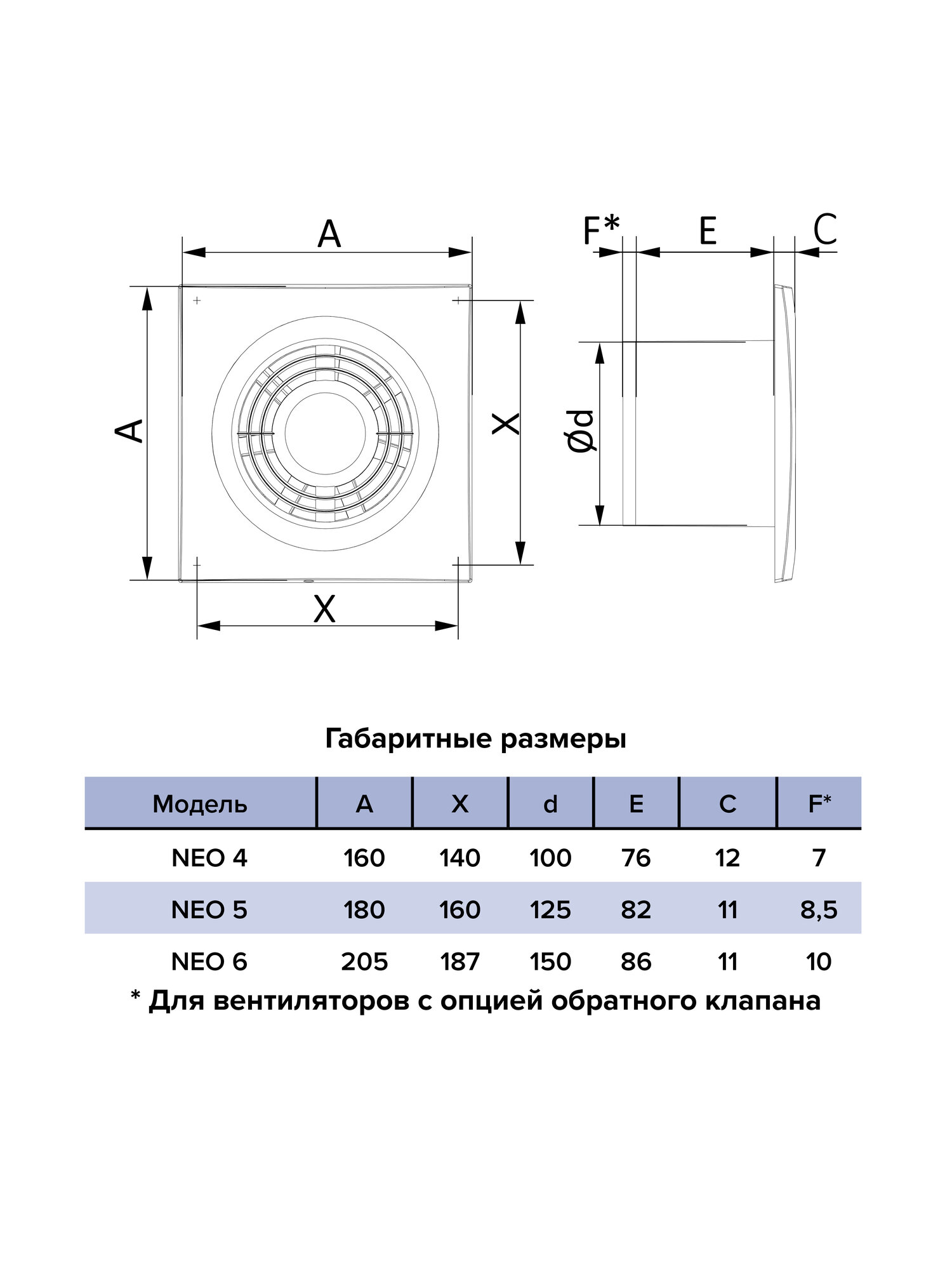 Серия Эра NEO представлена вытяжными вентиляторами, которые оснащены высококлассной защитой от проникновения на внутренние детали комплектации твердых предметов из внешней среды. Все модели могут быть использованы, как для периодического, так и для постоянного проветривания помещений. Корпуса устройств выполнены из коррозиеустойчивого пластика.