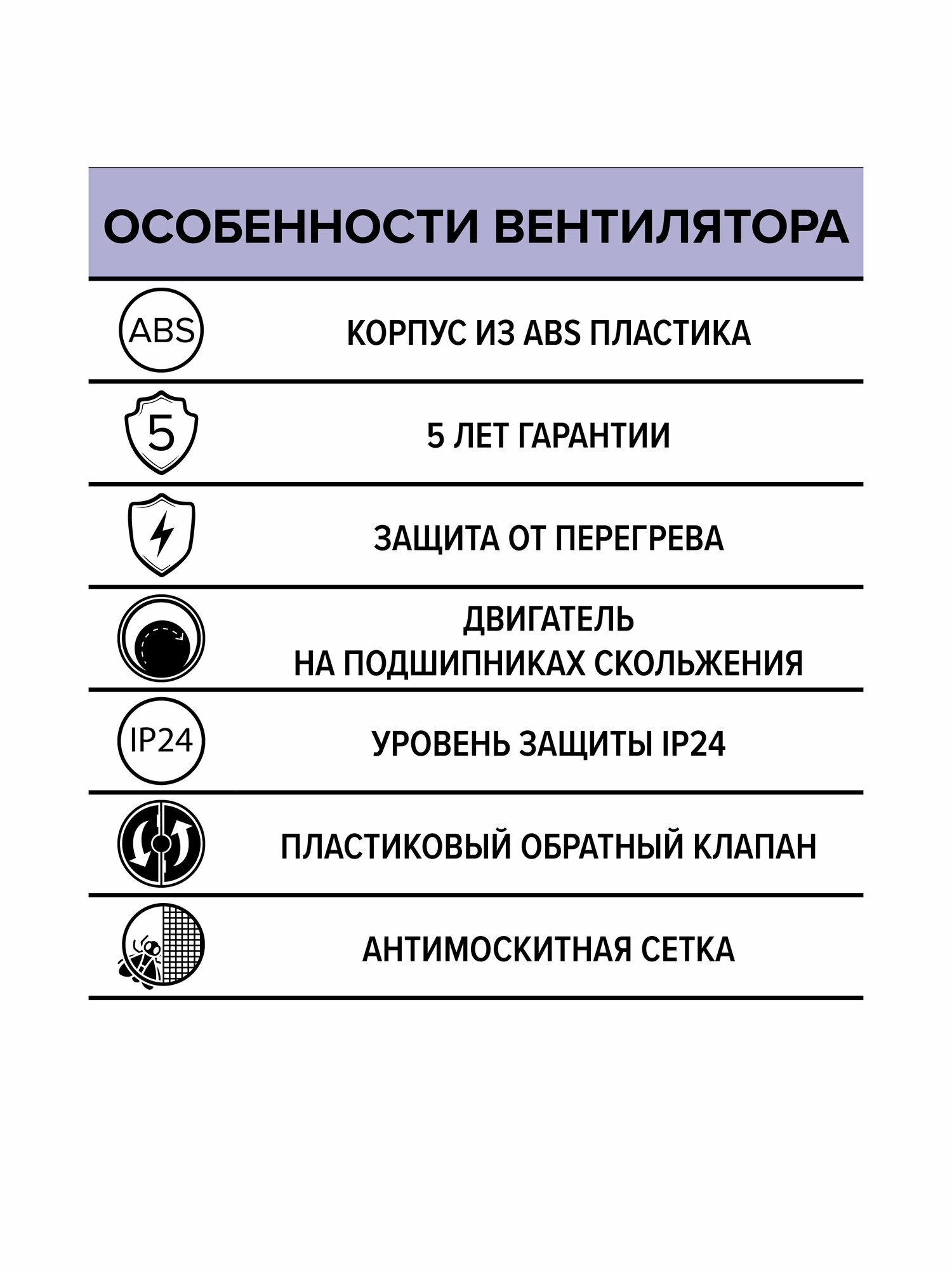 - Отличный вентилятор. Выполнен качественно. Антимоскитная сетка, клапан обратной тяги.