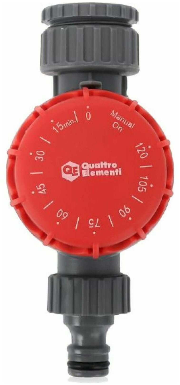 Дача, сад и огород Quattro elementi Таймер для полива QUATTRO ELEMENTI предназначен для подключения к поливочной системе и обеспечивает отключение напора через заданный промежуток времени. По истечении заданного времени таймер автоматически отключается и прекращает подачу напора к системе полива. Интервал времени подачи напора регулируется от 15 до 120 минут.