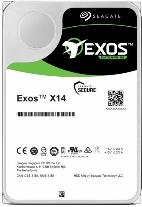 12 ТБ Жесткий диск Seagate Exos X14 [] представляет собой профессиональное решение для корпоративного использования. Отличительной особенностью данной модели является емкость, соответствующая 12 ТБ, что позволит комфортно работать с любыми массивами данных без каких-либо ограничений. Жесткий диск Seagate Exos X14 [] использует в своей основе высококачественные компоненты и передовые технологии, благодаря чему накопитель отличается высокой надежностью и стабильностью работы. Максимальная скорость вращения шпинделя составляет 7200 об/мин, что вкупе с кэш-памятью на 256 Мб и интерфейсом SATA III обеспечивает высокое быстродействие — скорость передачи данных может достигать 261 Мб/с. Жесткий диск Seagate Exos X14 [] выполнен в прочном и герметичном корпусе, главной особенностью которого является гелиевый наполнитель, который надежно защищает содержимое от вибраций, ударов при падении и других механических воздействий. Уровень шума в простое и процессе работы составляет 28 дБ и 32 дБа соответственно.