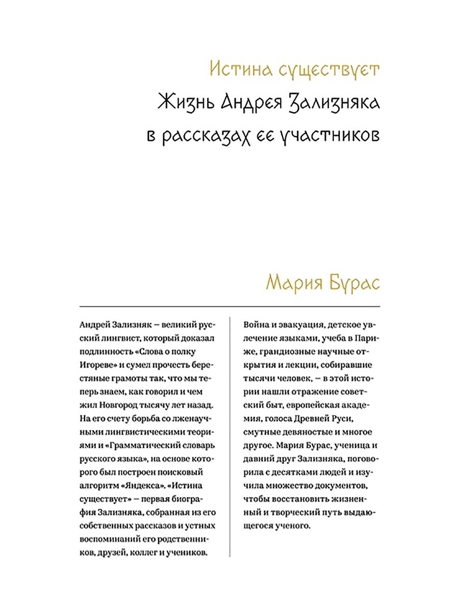 Истина существует. Жизнь Андрея Зализняка в рассказах (Мария Бурас); Individuum / Popcorn books, 2019