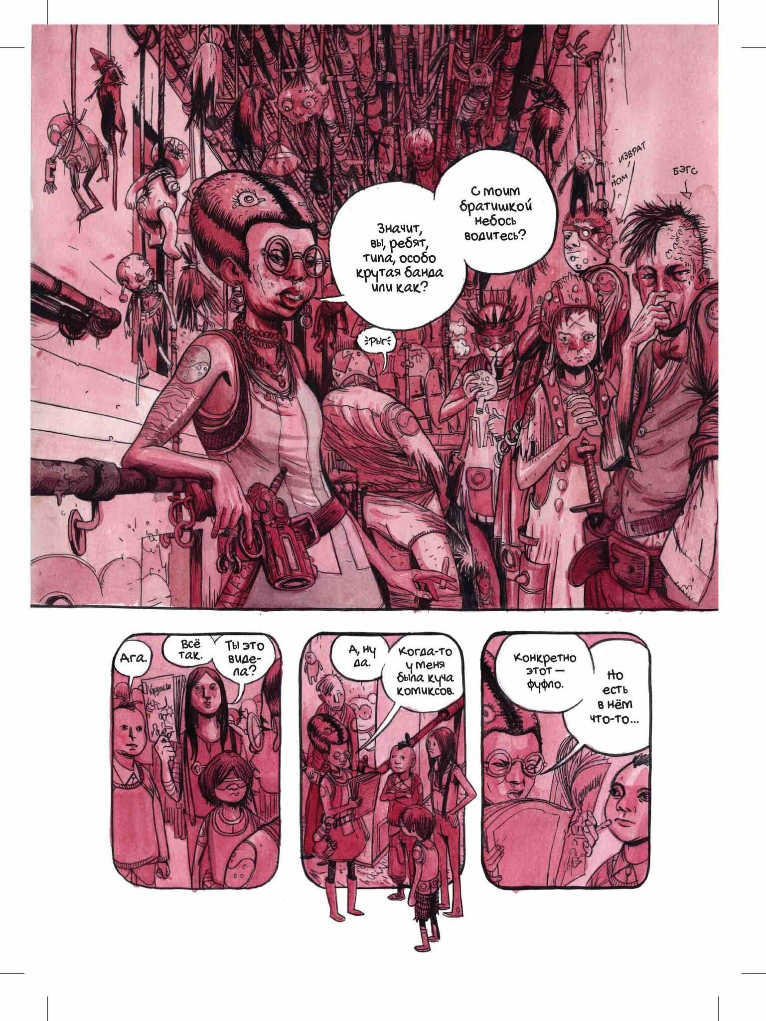 Комикс входит в «Лучший список комиксов» и «Ещё 100 рекомендуемых комиксов» в списках Spidermedia, но мне не понравился. Не спас даже акварельный рисунок, который обожаю, объём книги в 304 страницы (бумажная версия) и многоуровневый сюжет. Повествование не стремится раскрыть сюжет, а скорее в красках показывает все ужасы, с которыми сталкиваются герои. Картинка при всей невероятной фантазии автора и проработке рисунка чаще вызывает брезгливость. Может история не просто п р о подростков, возможно, она д л я подростков. Только в этом возрасте хочется наблюдать мир без особых прикрас, потому что все чувства обострены. Наверное, из-за этого книге присвоили «+18».