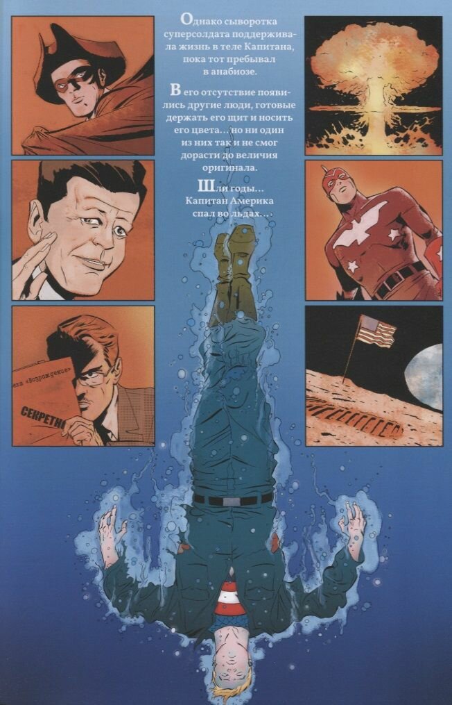 Эд Брубейкер показал, как титул Капитана Америка влияет на человека. Для Барнса это искупление бывших грехов. Но выясняется, что Стив не погиб. Баки и его товарищам придется побороться за него, как и самому Роджерсу. Вы узнаете тайну гибели главного патриота США.