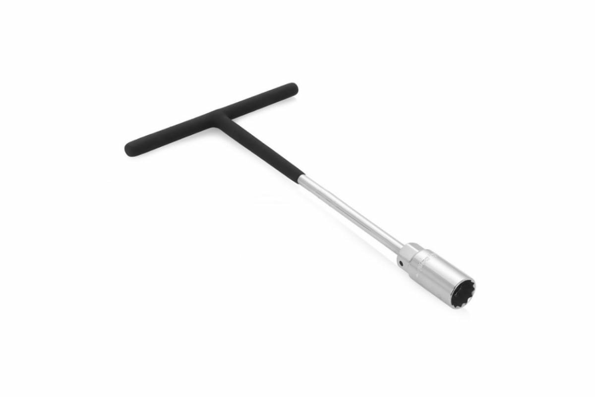 Ключ свечной Т-образный 12-гранный OMBRA Размер: 16 ммПредназначен для надежного удержания свечи зажигания. В данном изделии применен специальный захват. Благодаря запатентованной конструкции головки захват никогда не выскакивает, надежно и без повреждений удерживает изолятор свечи зажигания и не реагирует на высокую температуру изолятора, в отличие магнитных колец, способных при малейшем отклонении от оси вращения повредить или разрушить керамику изолятора свечи или потерять способность удерживать свечу зажигания при нагреве или, что самое опасное, расколоться, при неловком с ним обращении и отправить части магнитного материала внутрь цилиндра двигателя, что грозит пользователю вместо пустяковой операции производством достаточно серьезного ремонта. Страна производитель Тайвань