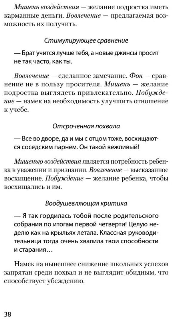 Для преодоления сопротивления убеждению автор предлагает целый арсенал всевозможных приемов - универсальных и специфических, демонстрируя их на огромном количестве практических ситуаций - семейных, служебных, деловых и педагогических, в межличностном общении и в обстановке агрессивного противодействия в споре и полемике.