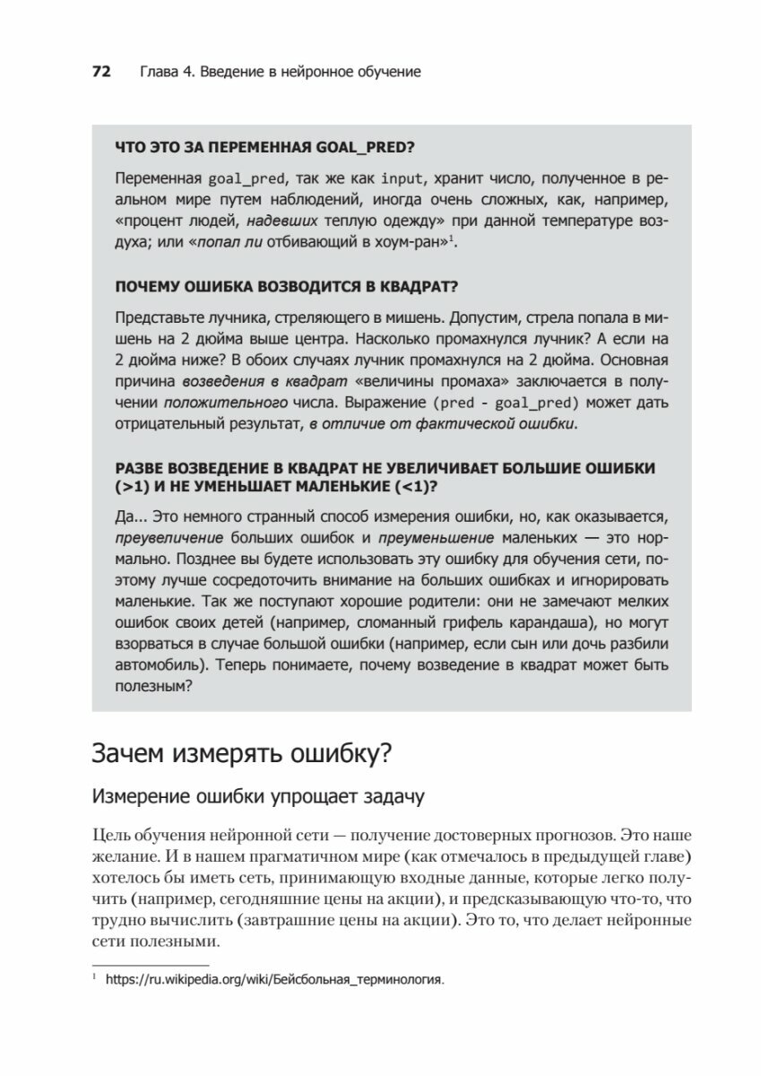 Отталкиваясь от этого введения, при начальных навыках программирования на языке Python, можно плавно перейти к тому же Tensorflow (PyTorch) в плане реализации алгоритмов и более сложным математическим описаниям в других книгах. Стоит предупредить читателя, что книга главным образом фокусируется на нейронных алгоритмах, хотя машинное обучение включает гораздо больше научных областей, например статистические и вероятностные методы, которые в некоторых случаях оказываются даже "мощнее" нейронных. Для знакомства с этими аспектами машинного обучения вам потребуется другая книга.