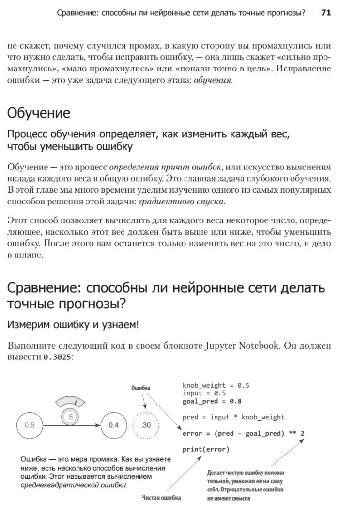 Конечно это книга начального уровня, хотелось бы мне иметь её лет 20 назад, но очень неплохой подход, процесс показан со всех сторон, всё понятно, воспроизводимо на пальцах. Да и добирается автор в своём изложении машинного обучения достаточно глубоко, не каждый новичок даже мечтал оказаться в таких дебрях :-) В общем отличная книга, с хорошими иллюстрациями, для тех кто хочет понять азы и чуть дальше, да ещё на примере практически значимых языков и библиотек программирования, которые реально используются в "большом" машинном обучении и науке о данных.